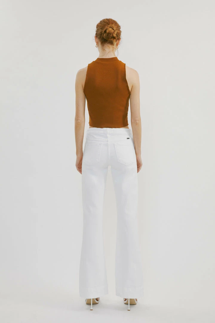 Our Allegra Mid Rise Holly Flare Jeans are a staple piece missing from your denim collection. This flare comes in a crisp white perfect for the spring and summer months. Sits high right at the natural waistline as it flares out down the leg. Made with stretch denim that holds its shape while giving you a classic denim feel and authentic look. Features a five-pocket design and a single button front with a zip fly closure.