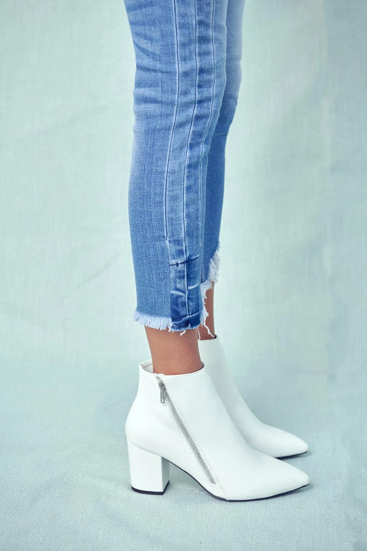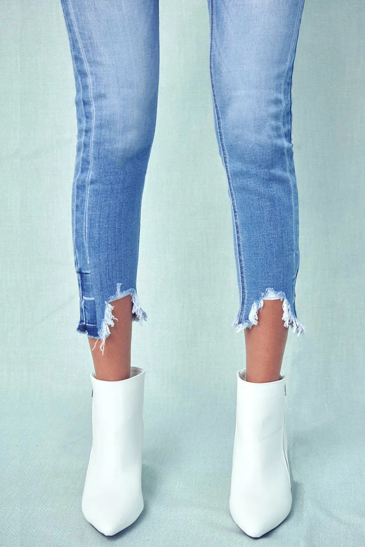Upgrade your wardrobe with this pair of chic and stylish ankle skinny with a high-rise waistline! Featuring whiskering, fading, distressed hems, single-button closure with zip fly, and a 5-pocket design.Â
