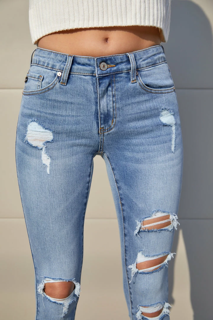 There’s no such thing as too much denim in your wardrobe! Add this bestselling Augustina mid-rise ankle skinny to your denim collection and we guarantee you’ll find an array of styling options to make you an instant fashionista! Featuring distressed details throughout, frayed hem, contrast stitching, whiskering, fading, 5-pocket design, and single button closure with zip fly.