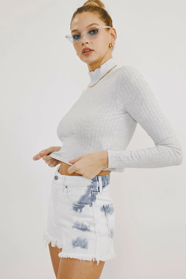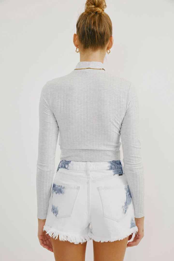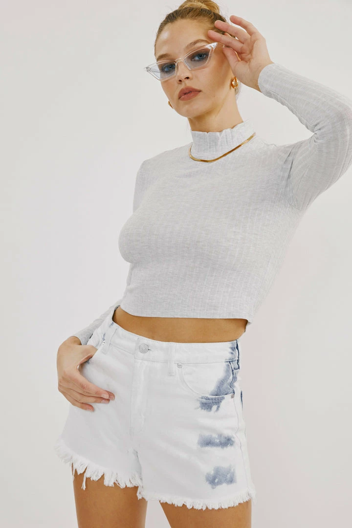 Create your next chic outfit with this pair of light wash non-stretch shorts featuring raw frayed step hem, distressed details, heavy acid-wash, 5-pocket design, and a single-button closure with a zip fly.
