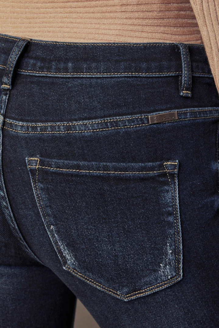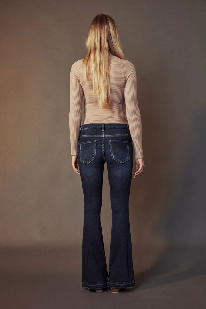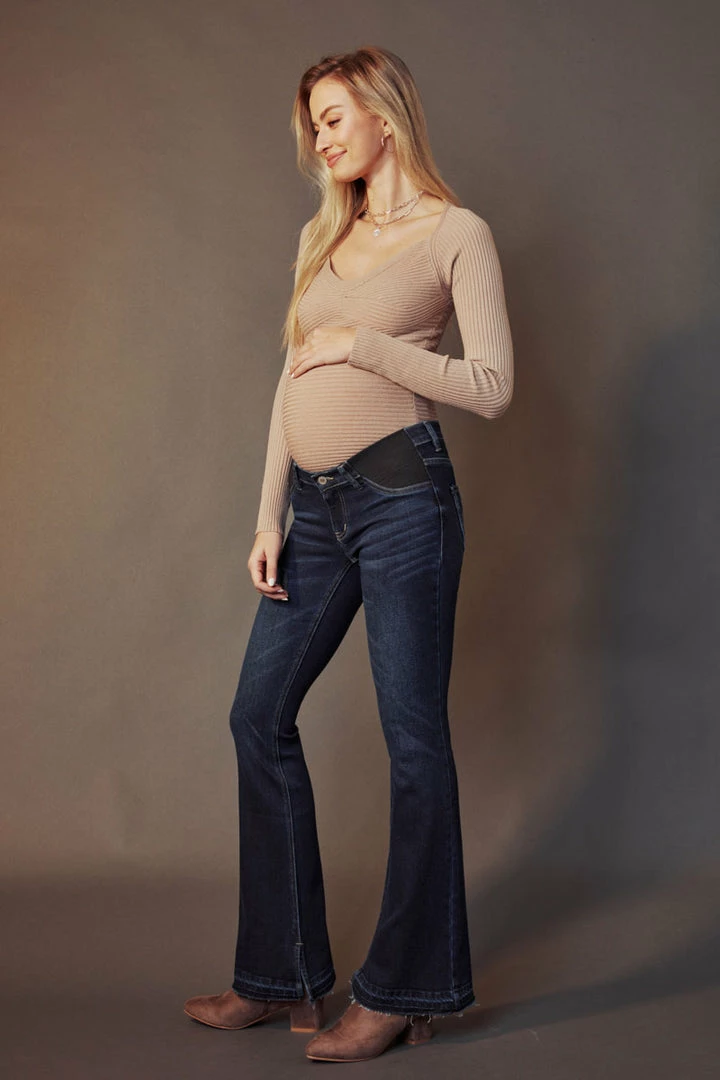 Maternity flare jeans featuring extra stretch denim which sculpts and shapes while adjusting to your changing body. Elastic panels at the waistband fit comfortably throughout and after pregnancy, and the functional fly makes it easy to style just like your regular jeans.