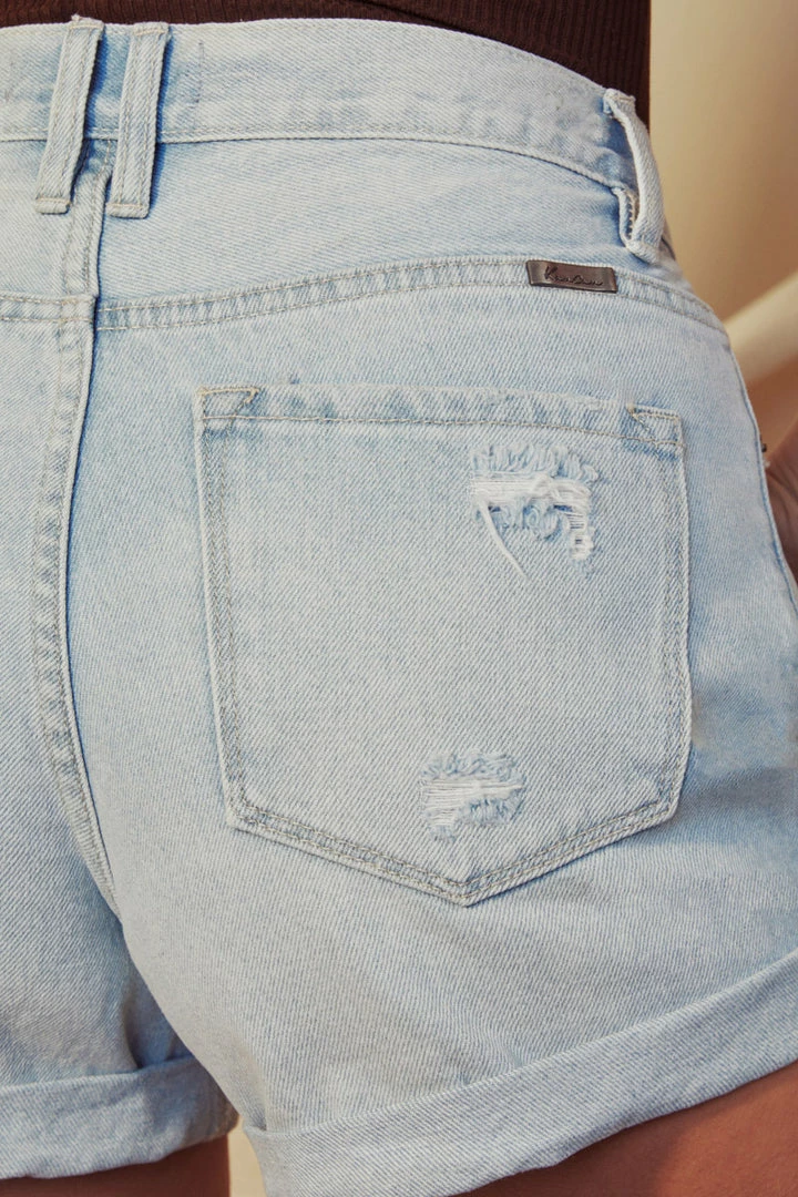 Looking for a fun, unique pair of shorts to pair with your favorite tops this summer? You can be an instant fashionista with our Daisy high shorts that features a cuffed hem and repaired distress detail. These shorts come in a classic mom shorts fit that is relaxed all the way down to the hem! This fun light wash denim piece has a regular 5-pocket design and single button closure and zip fly.Â
