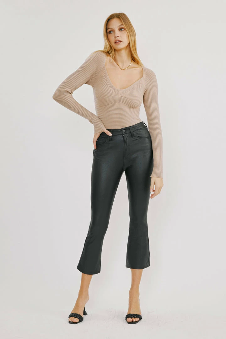 Our Darla High Rise Jeans come in a cute kick-flare fit that’s flirty and a fun style that will make any outfit pop. Sits above the natural waistline as it tapers down the leg and gently flares out at the ankle. This design is a must-have piece that’s versatile and trendy. Features a classic five-pocket design, single-button front closure, finished with black hardware.