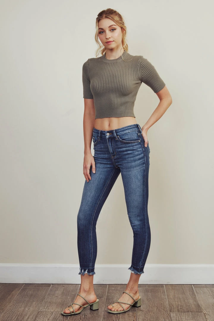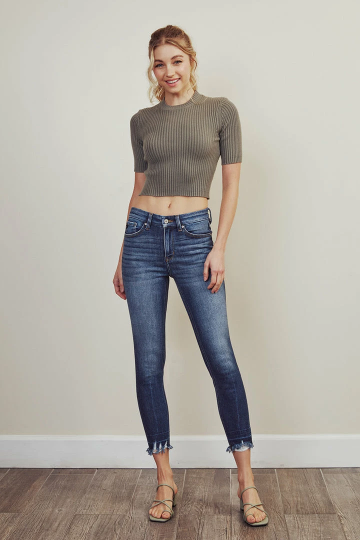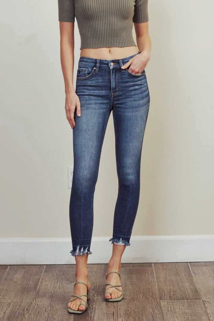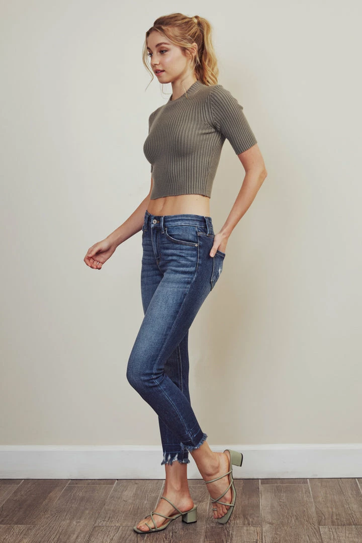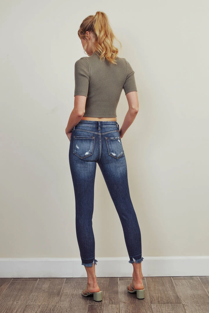 Skinny jeans are the perfect everyday piece! Featuring distressed unfinished hems, whiskering, fading, contrast stitching, a high-rise waistline, and a 5-pocket design, this style shows off your trendy style at all times!