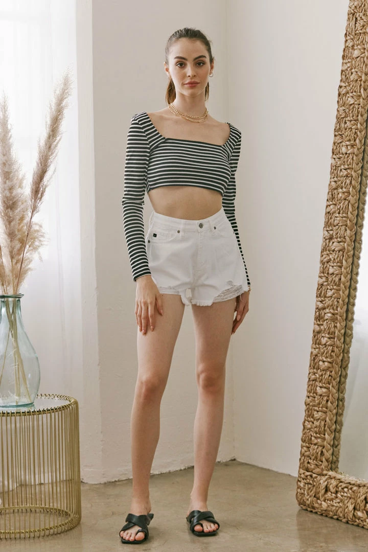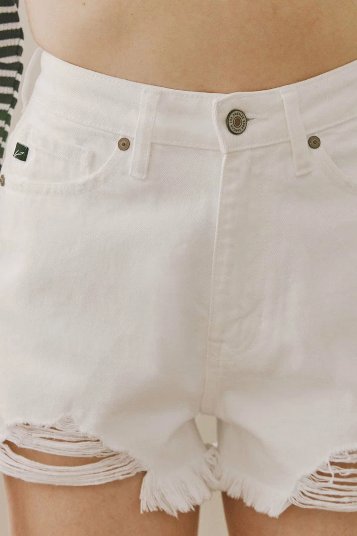 Denim structures form this chic mom jean short that sits high above the waistline as it relaxes down the hip and thigh for an on-trend look. Our Estella Ultra High Rise Shorts will give your summer fit a bright glow that’s sure to make you stand out amongst the crowd. Comes in rigid denim so it won’t lose its shape and its minor distress with raw hem give it an edgy worn-in style. Features a classic five-pocket design, single-button front, and zip-fly closure finished with gold hardware.