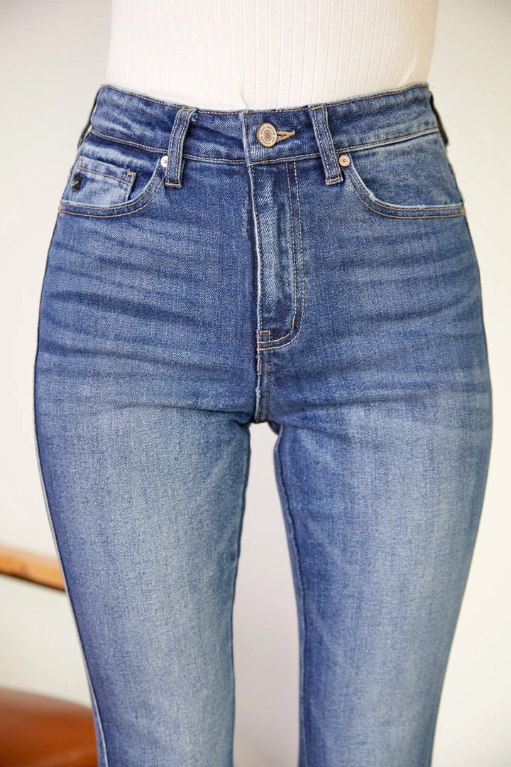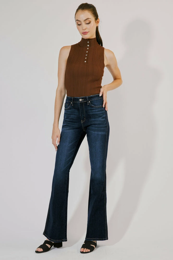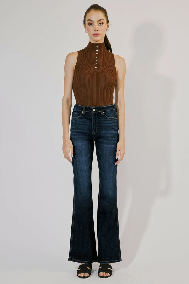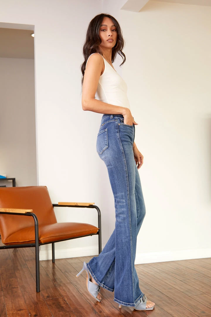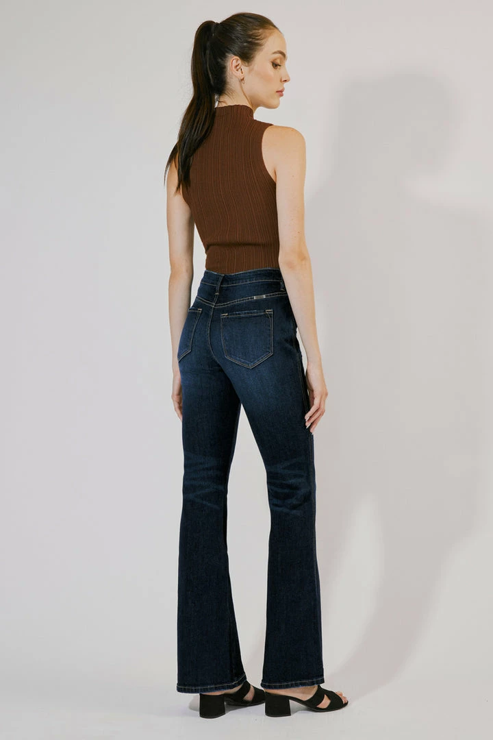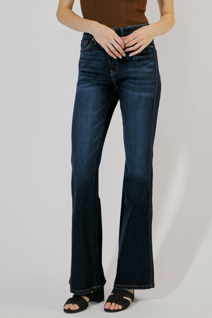 Our Luke High Rise Flare Jeans come with faded details and light distress for a subtle worn-in look that gives this piece a bit of a rustic vibe that’s perfect for casual fits. Sits above the natural waistline as it relaxes down the thigh and begins to flare out down the leg. Made with comfort-stretch denim for an easy fit that maintains its shape after regular wear. Features a classic five-pocket design, single-button front, and zip-fly closure.