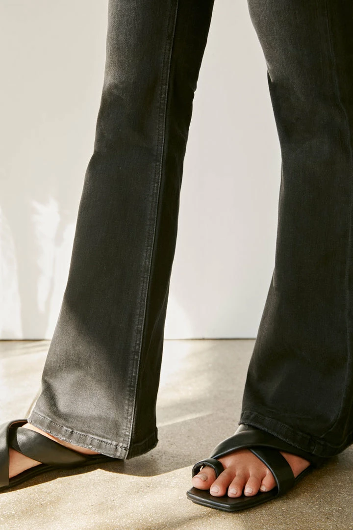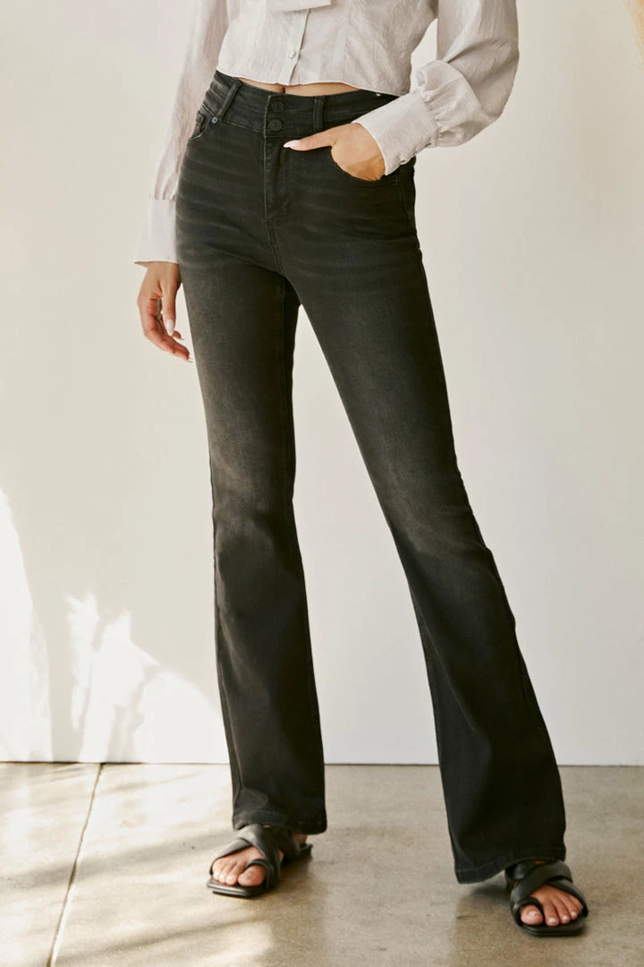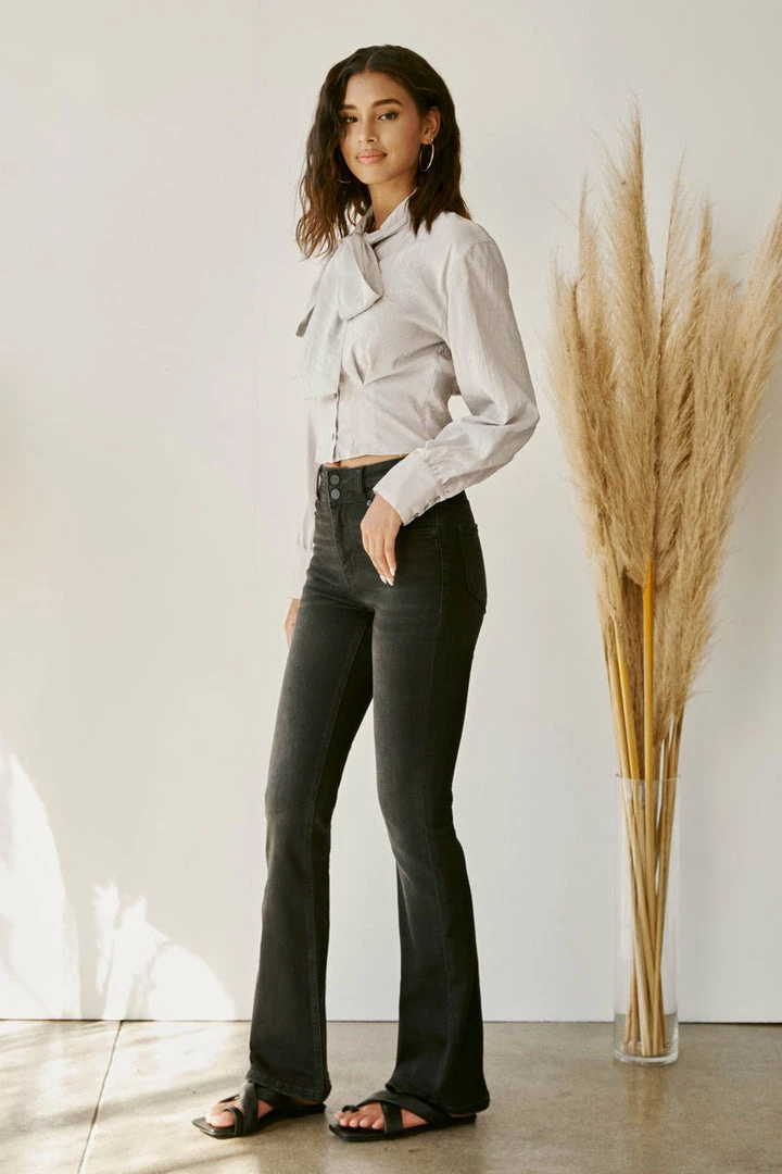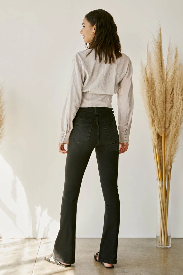 Our Sammie High Rise Jeans come in a bootcut design with subtle fading and a rich color making this piece a wardrobe staple that every denim collector needs. Sits above the natural waistline as it tapers down the thigh and begins to flare out at the calf. Made with super-stretch denim that’s breathable and flexible. Features a classic five-pocket design, double-button front, and zip-fly closure.