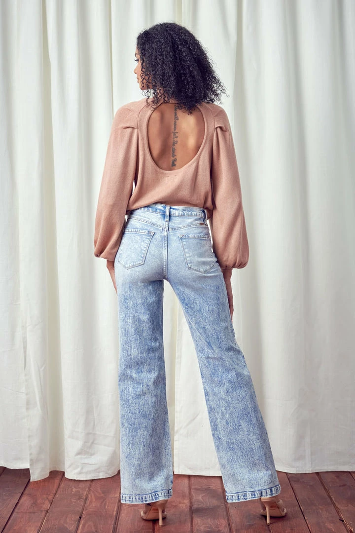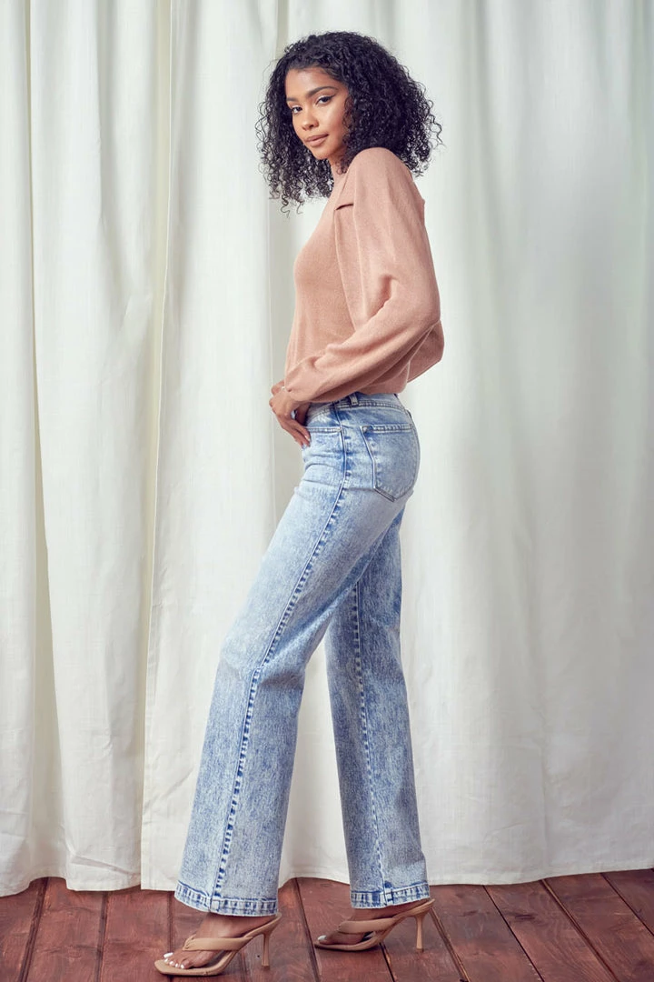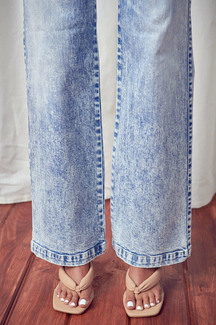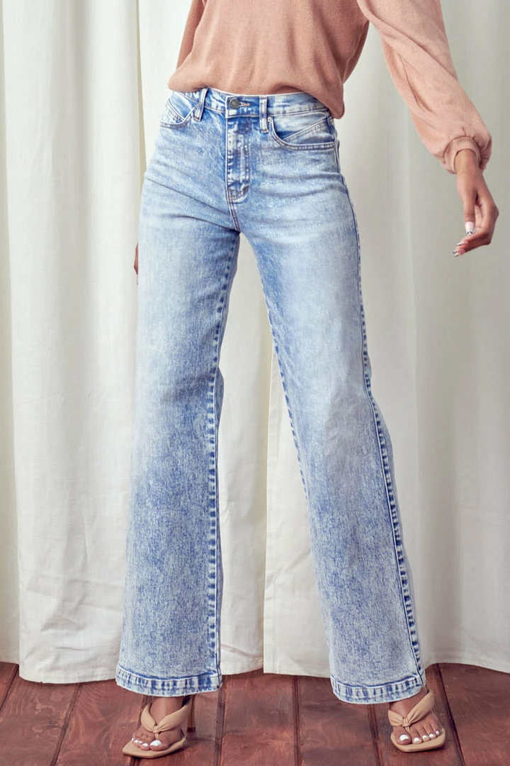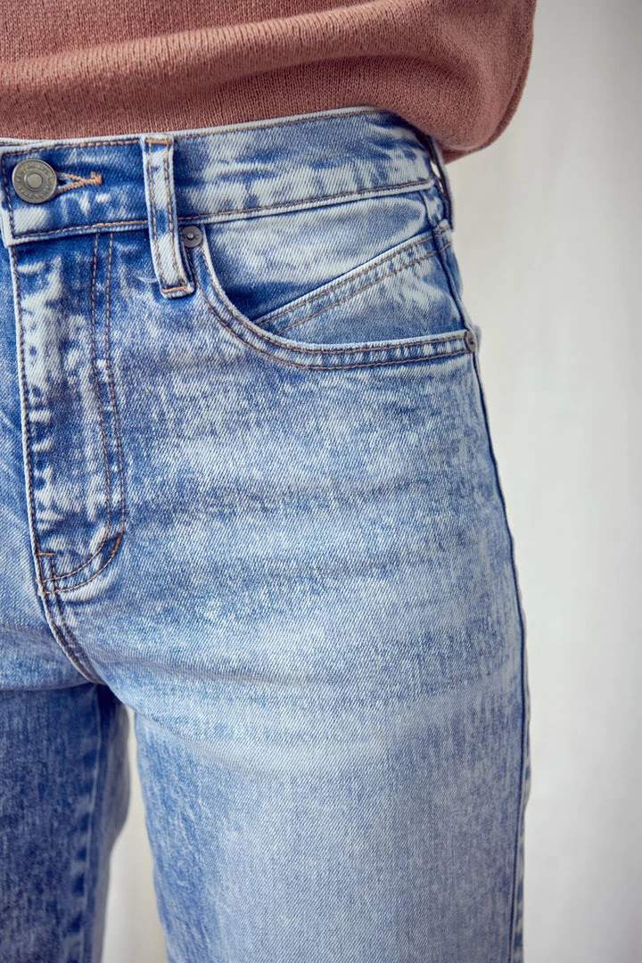 Our Sorena Ultra High Rise Flare features a retro wide leg design and a fun acid wash for the next level of style. These jeans come with fading detail that gives them just the right amount of edge. Features a regular 5 pocket design, single-button closure, and zip fly.