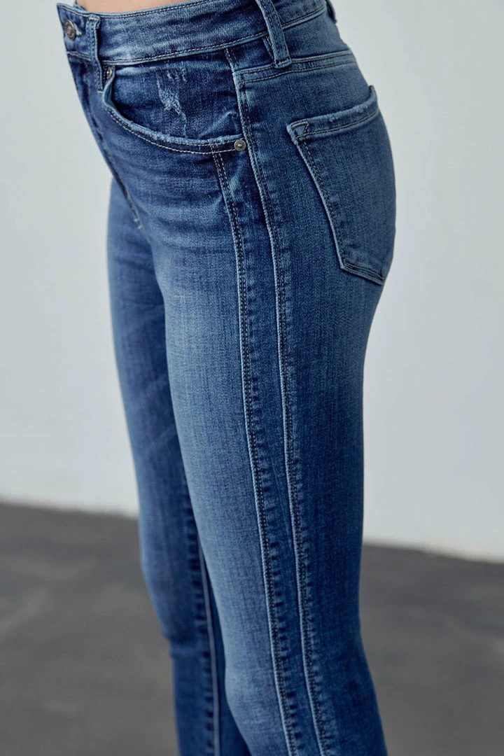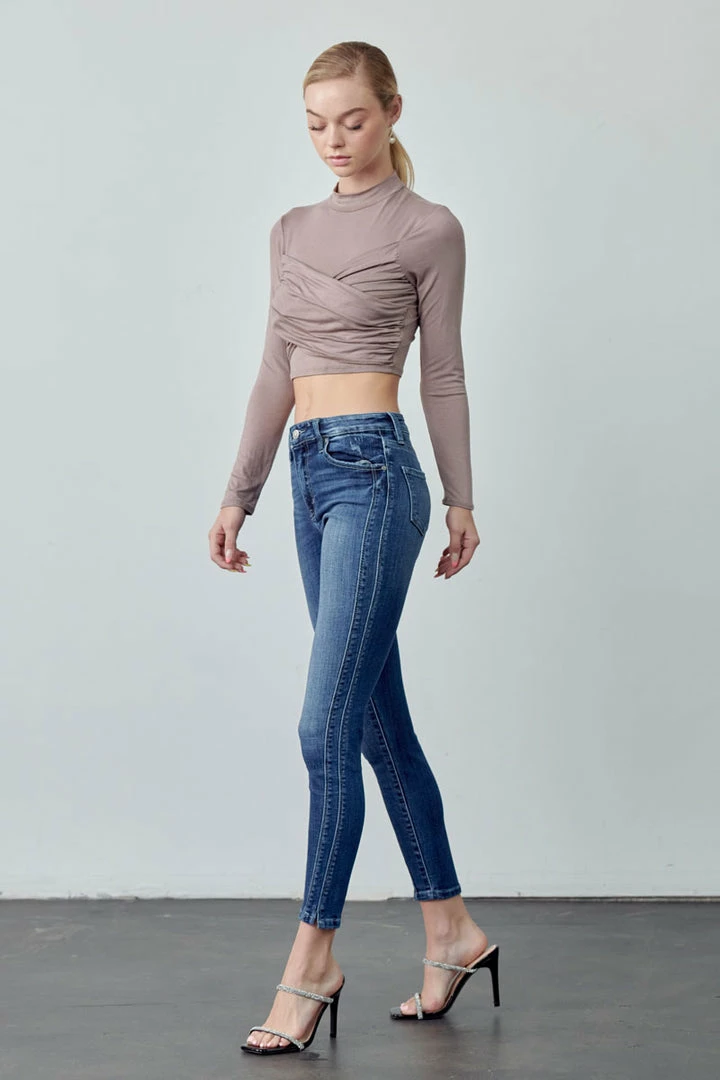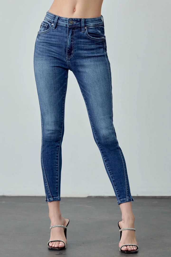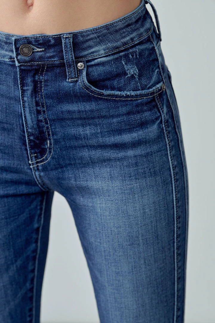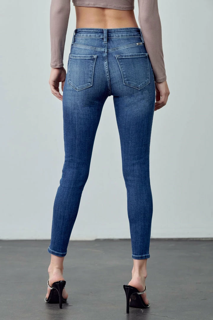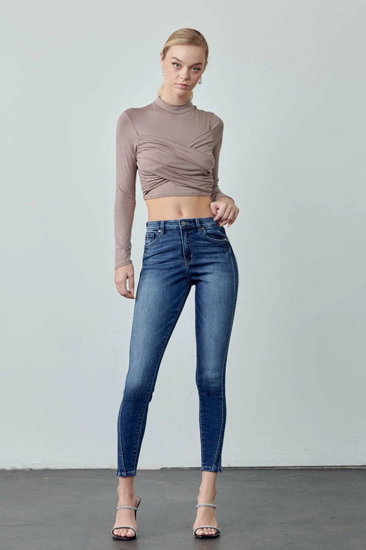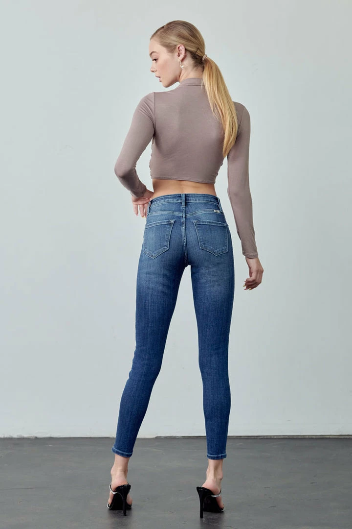 Our Hannah High Rise Ankle Skinny Jeans come in a faded wash with light whiskering and a twisted inseam that gives this classic style a unique look. Sits above the natural waistline as it tapers down the leg creating a figure-flattering silhouette that’s comfortable and breathable. Made with buttery-soft stretch denim that moves with your body while maintaining its shape even after multiple wears. Features a classic five-pocket design, single-button front, and zip-fly closure.