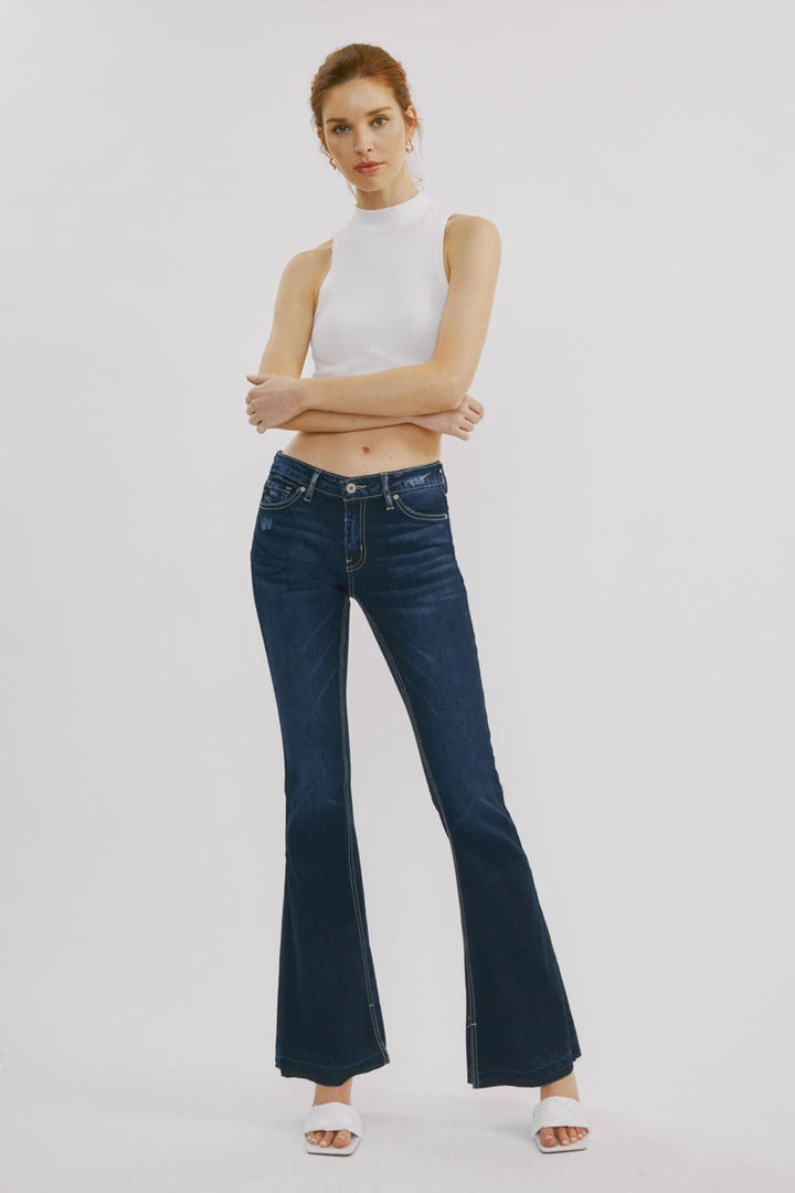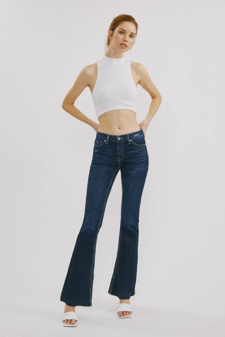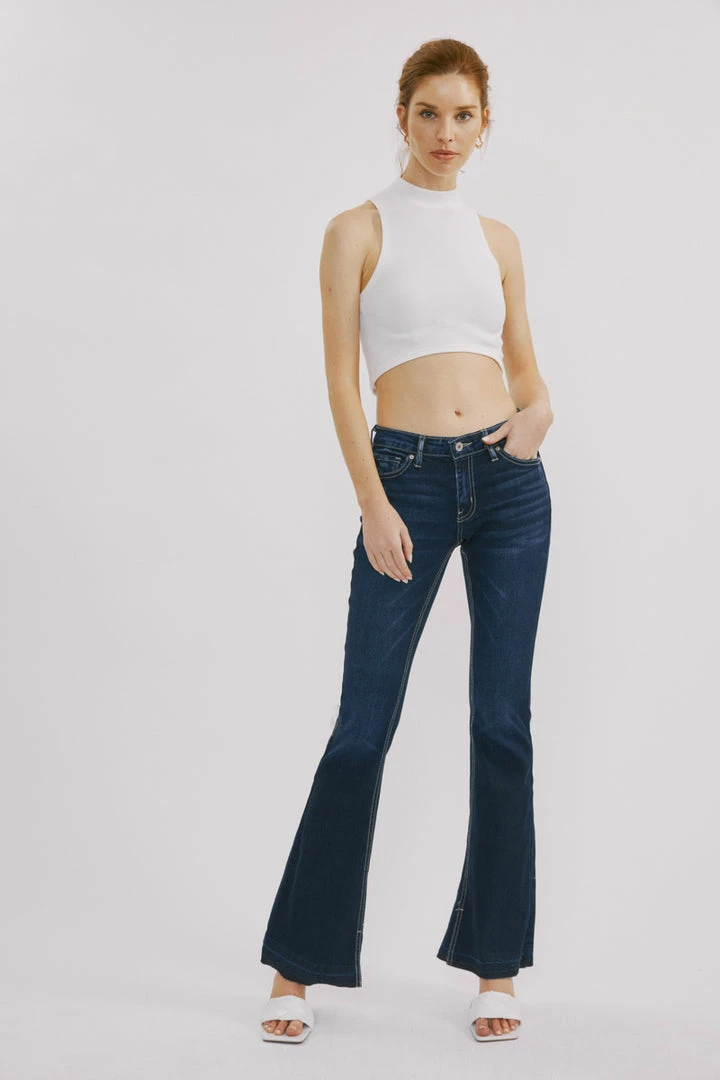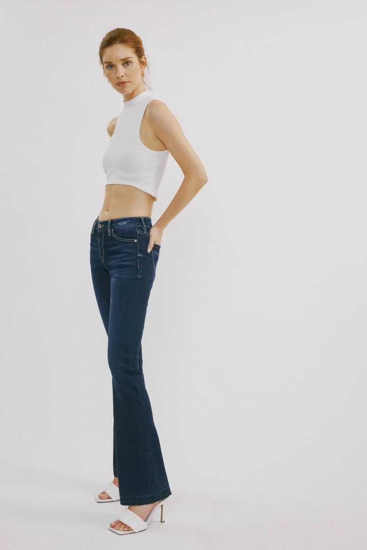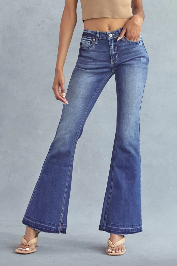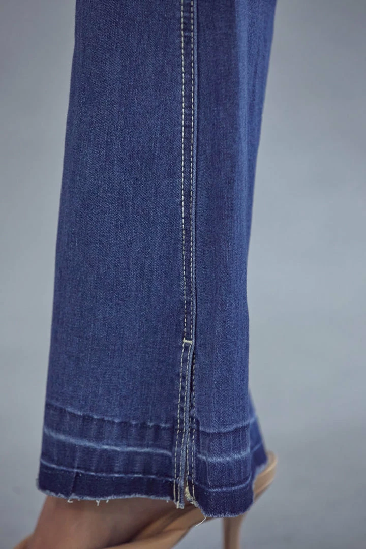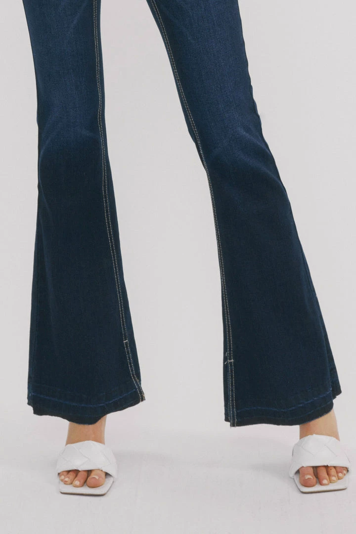 Release hem flare jeans that elongate your legs and bring some retro-inspired flair to your everyday style. From the mid-waist to the flared cut, these soft-touch, stretchy jeans offer a leg-lengthening silhouette inspired by sleek and ’70s-inspired styles.