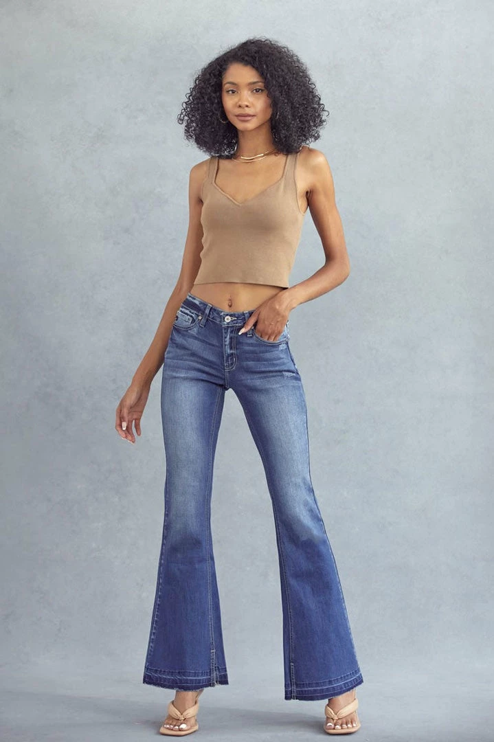 Release hem flare jeans that elongate your legs and bring some retro-inspired flare to your everyday style. From the mid-waist to the flared cut, these soft-touch, stretchy jeans offer a leg-lengthening silhouette inspired by sleek and ’70s-inspired styles.