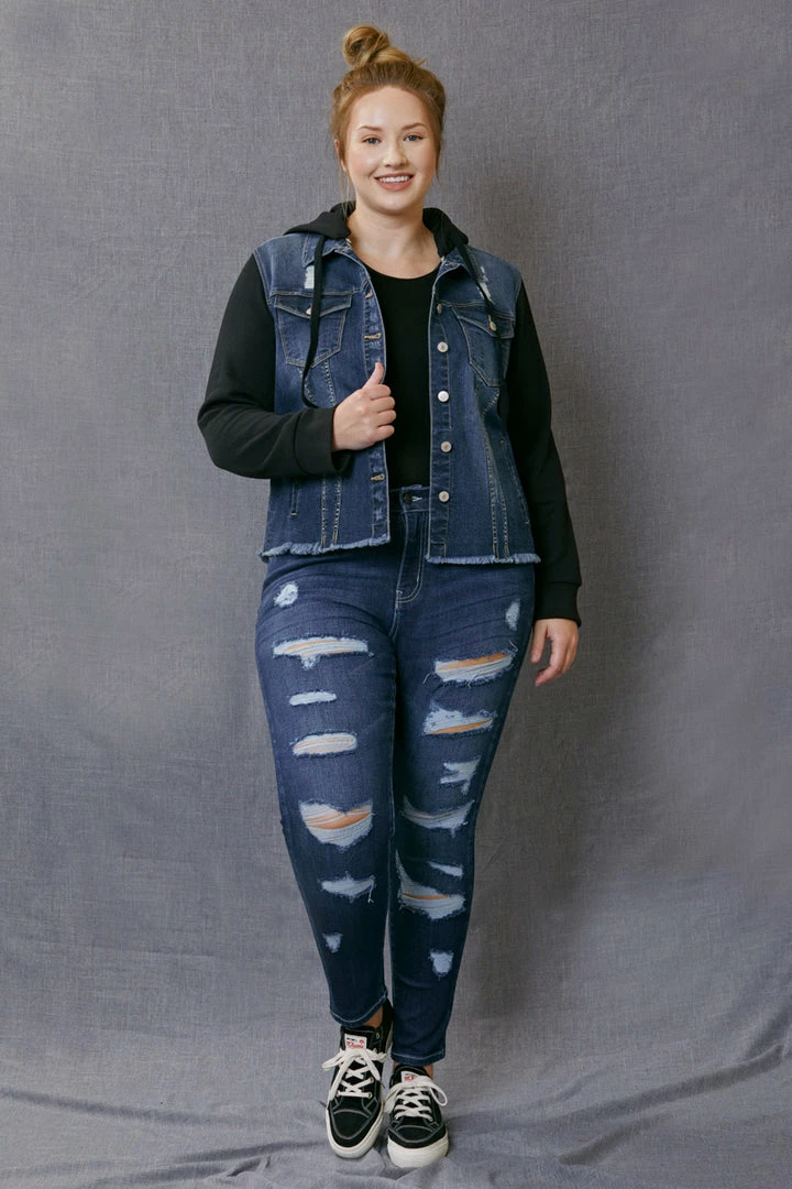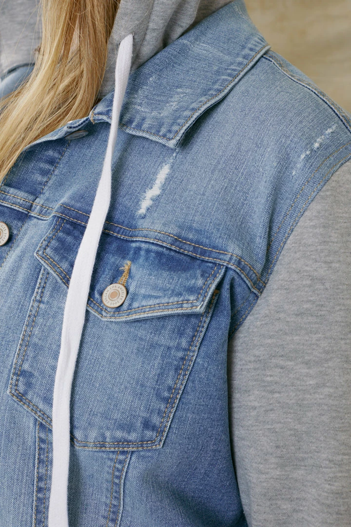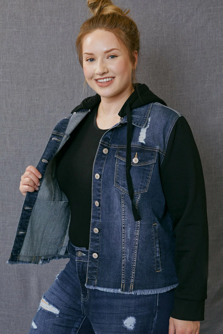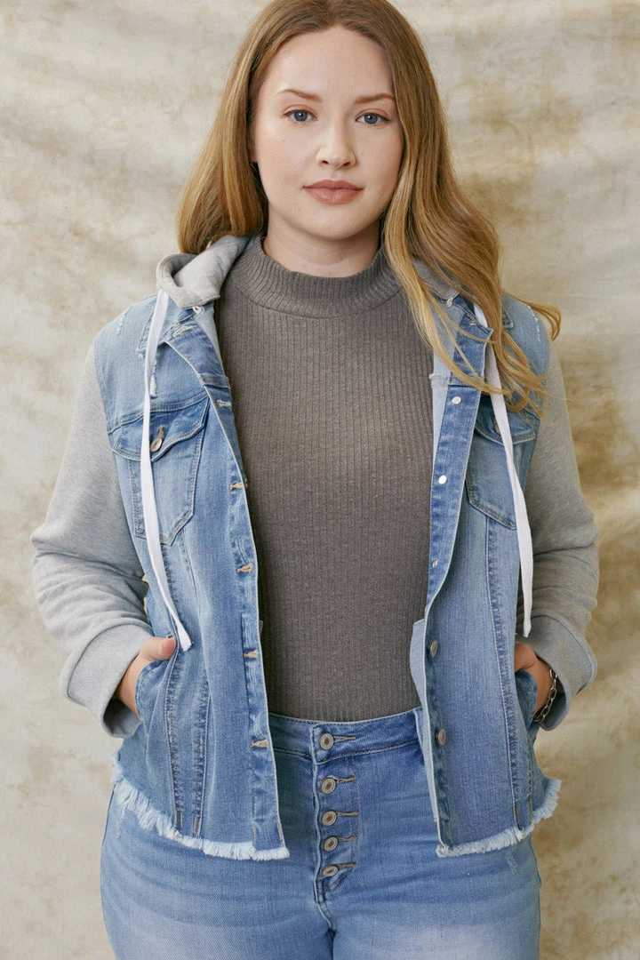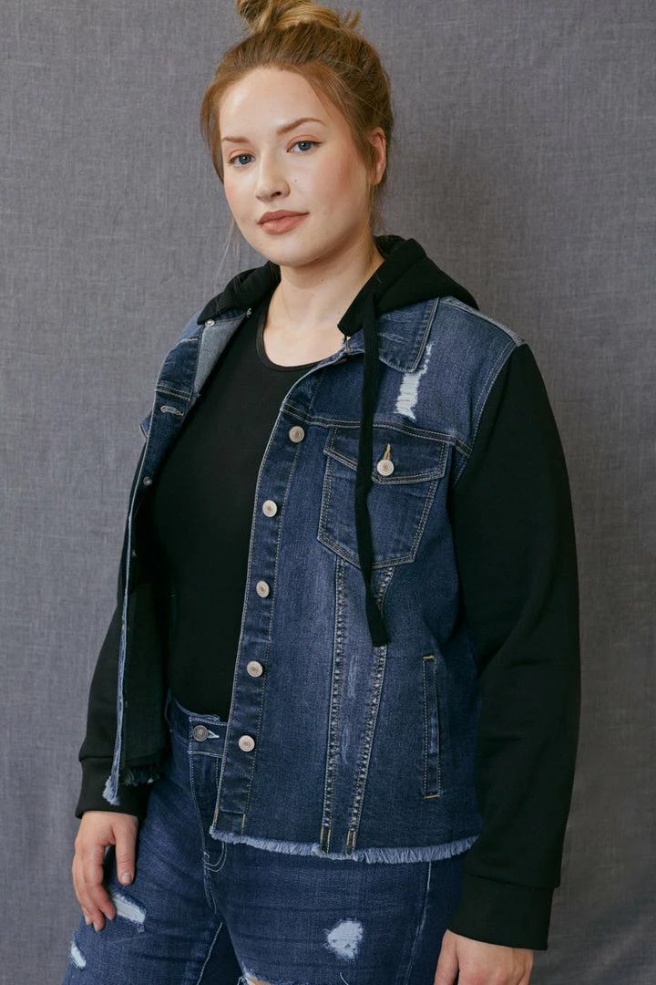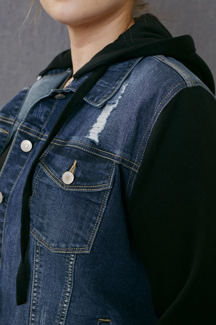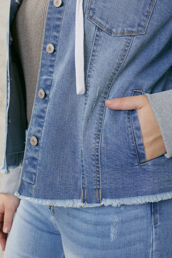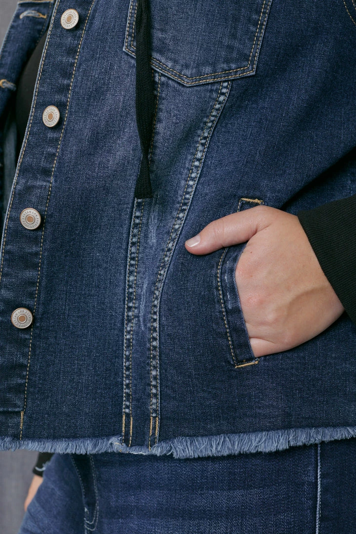 Our Kiele denim jacket comes in a dark and medium wash while features a relaxed fit with a drawstring hood for a totally customizable fit. Perfect for layering or dressing up any outfit. This versatile jacket was made to be worn by stylishly chic babes.