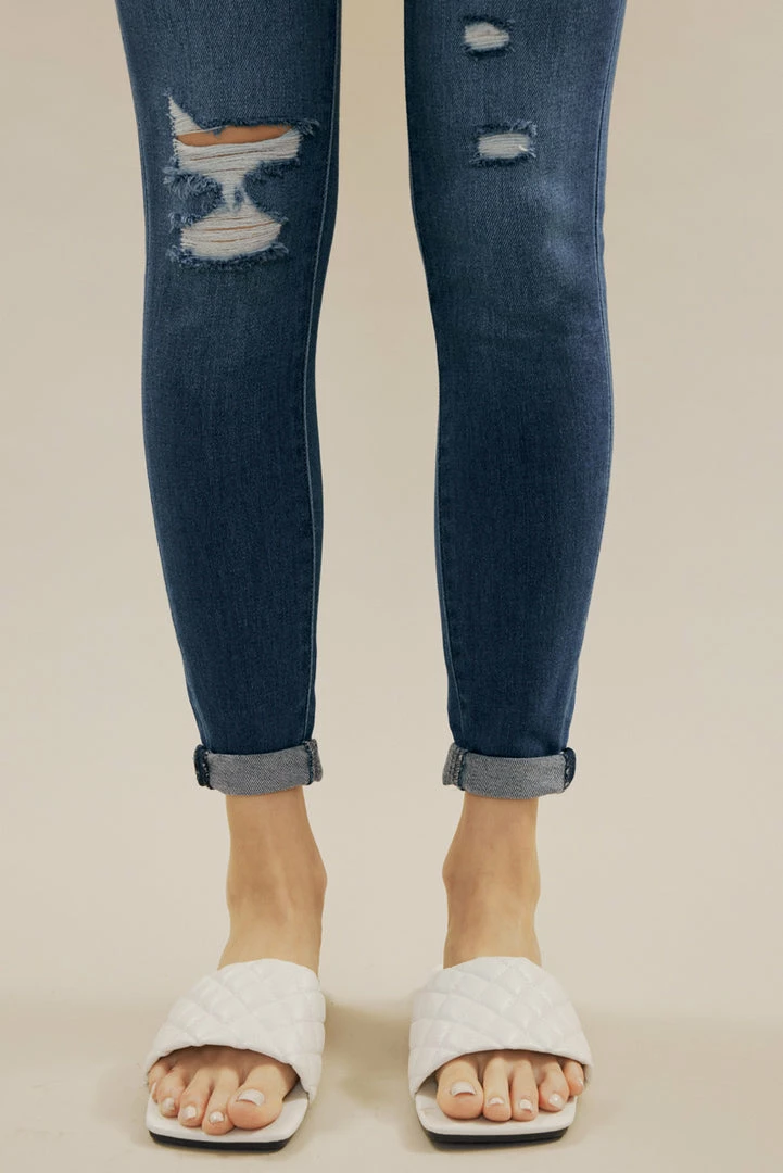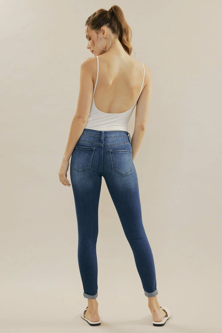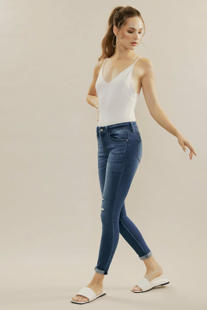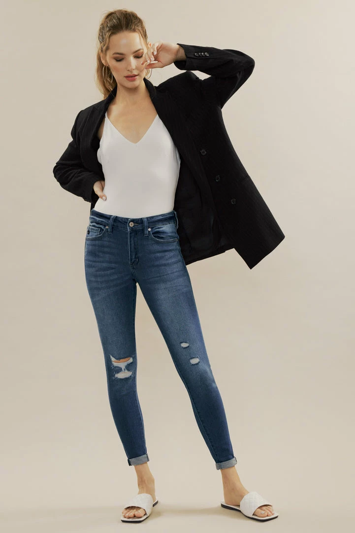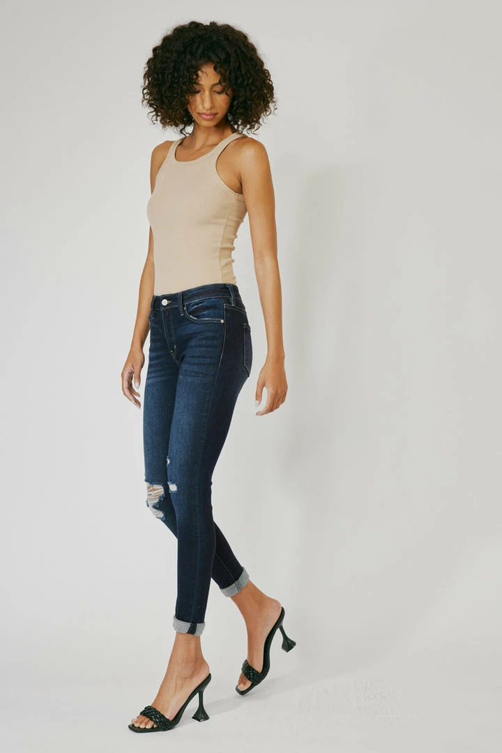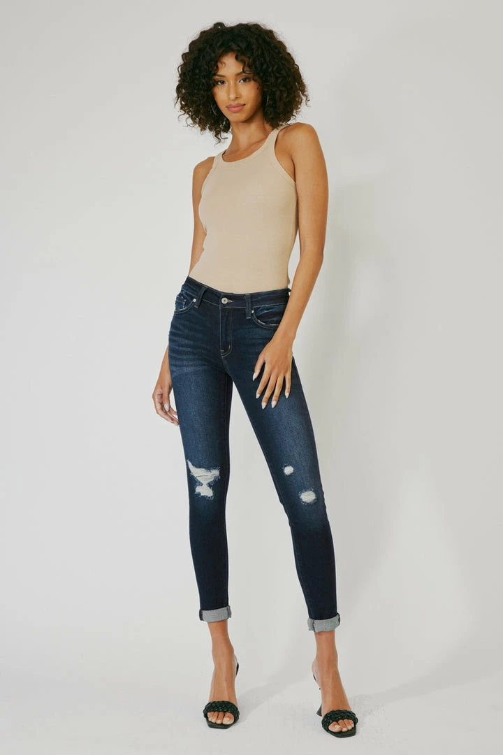 Look and feel your best this season in our versatile Hudson High Rise Ankle Skinny Jeans! This pair will become an instant wardrobe staple in your closet! Featuring whiskering, fading, slightly distressed detailing at the knees, folded hems, 5-pocket design, and single button closure with zip fly.