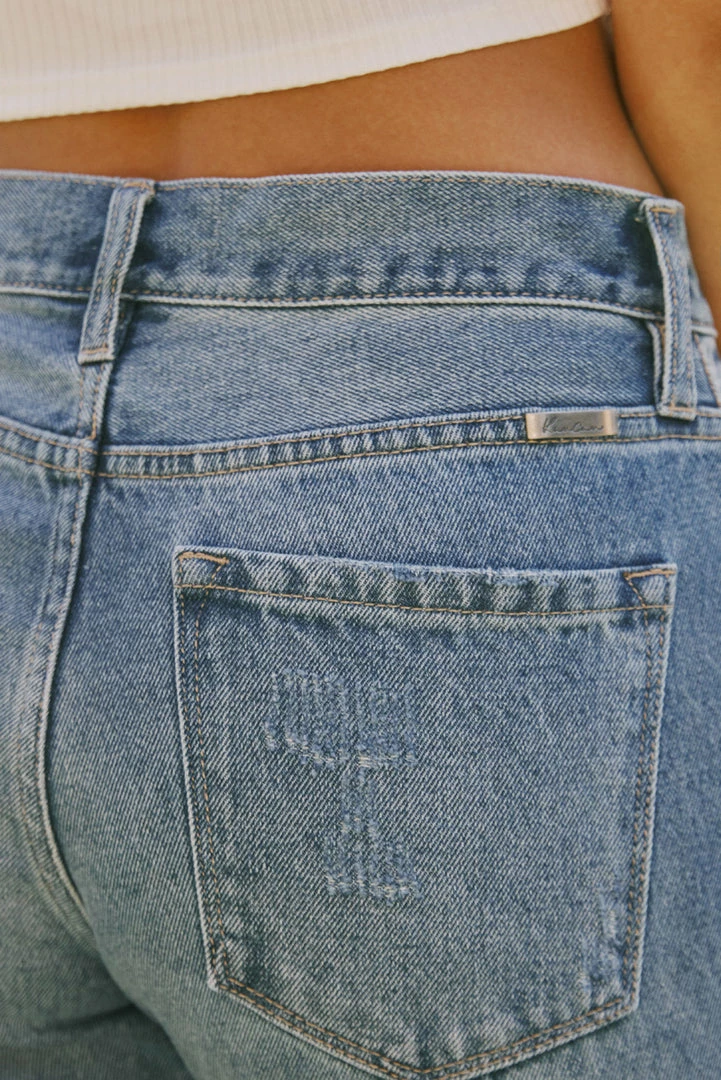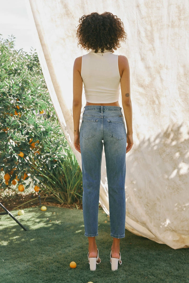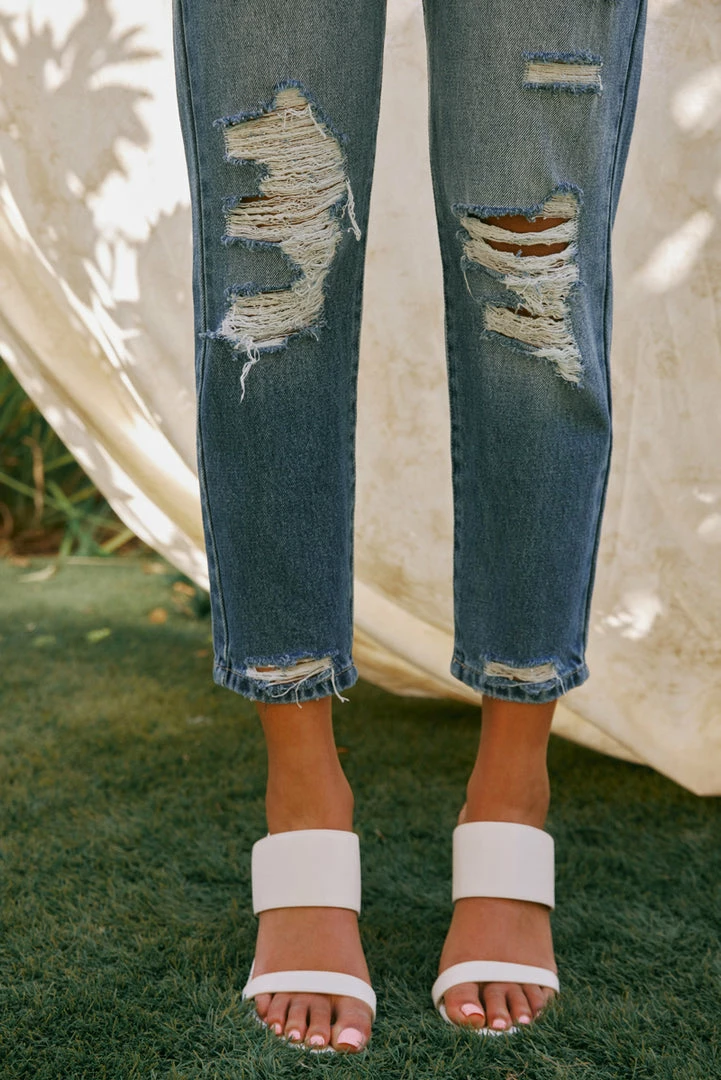 Look and feel your best in our stylish Kerrigan ultra-high mom jeans! The ultra high-waisted silhouette creates a flattering look you’ll feel confident in while also providing comfort with its relaxed fit and touch! Featuring whiskering, fading, distressed details throughout, a 5-pocket design, and a single button closure with zip fly.Â
