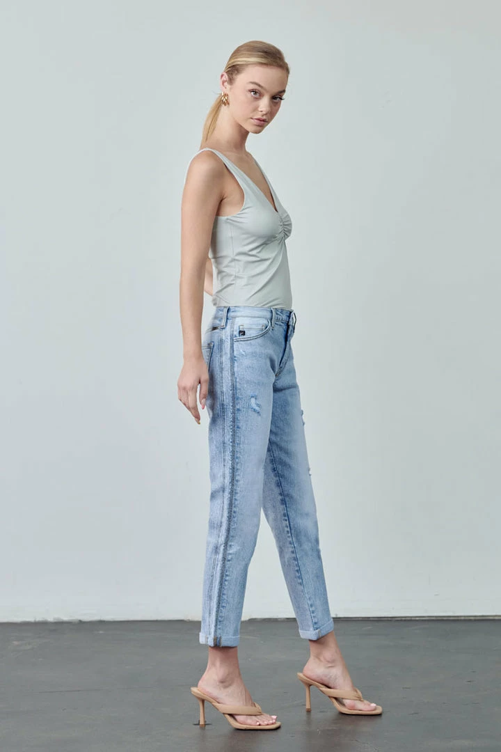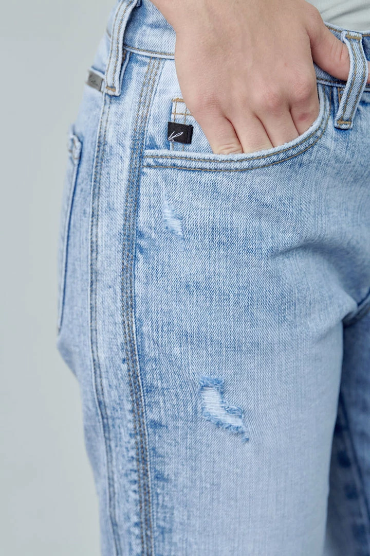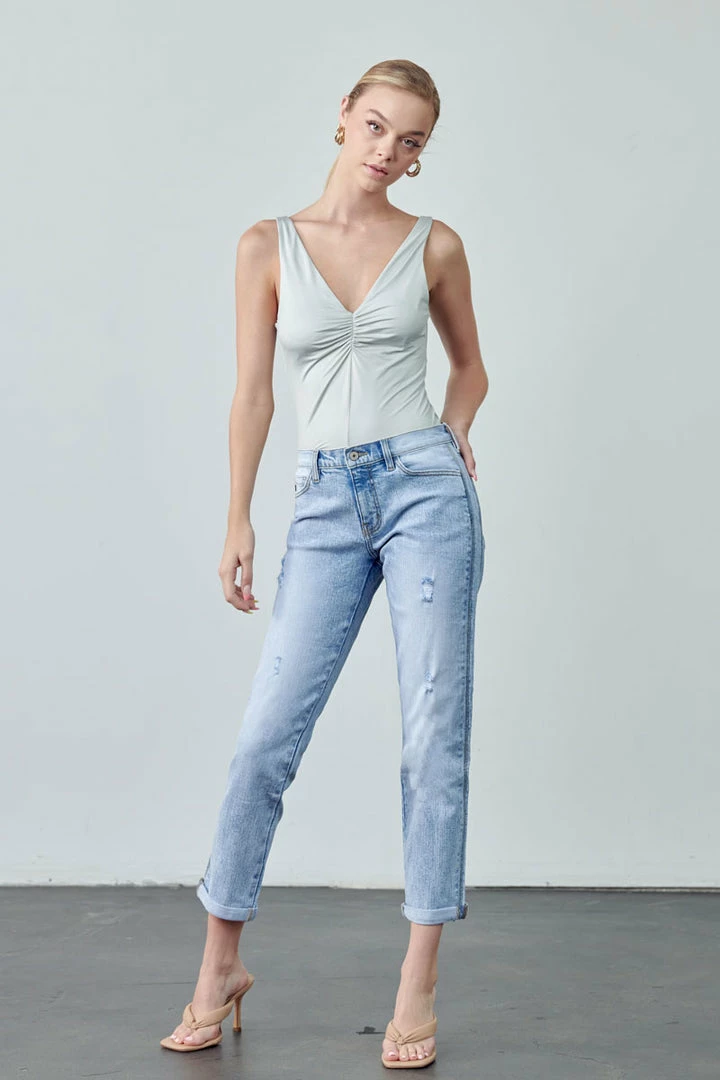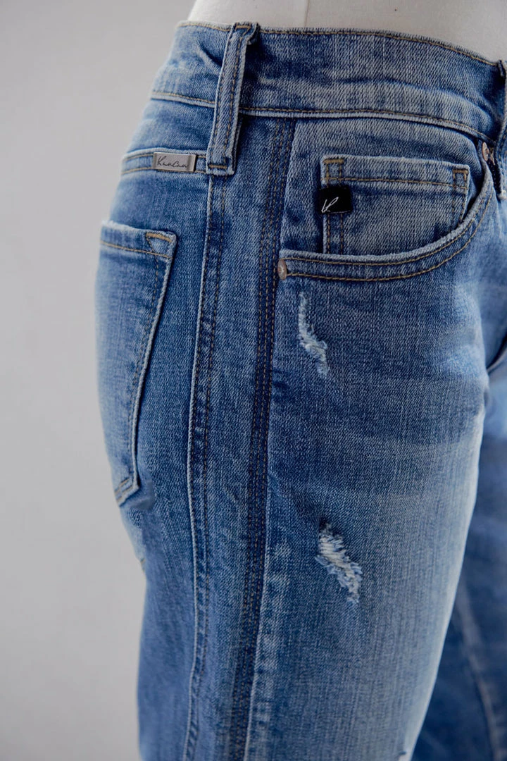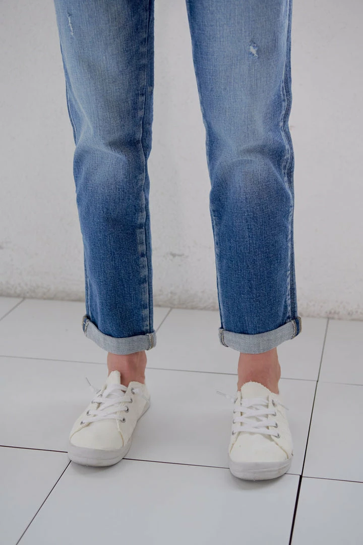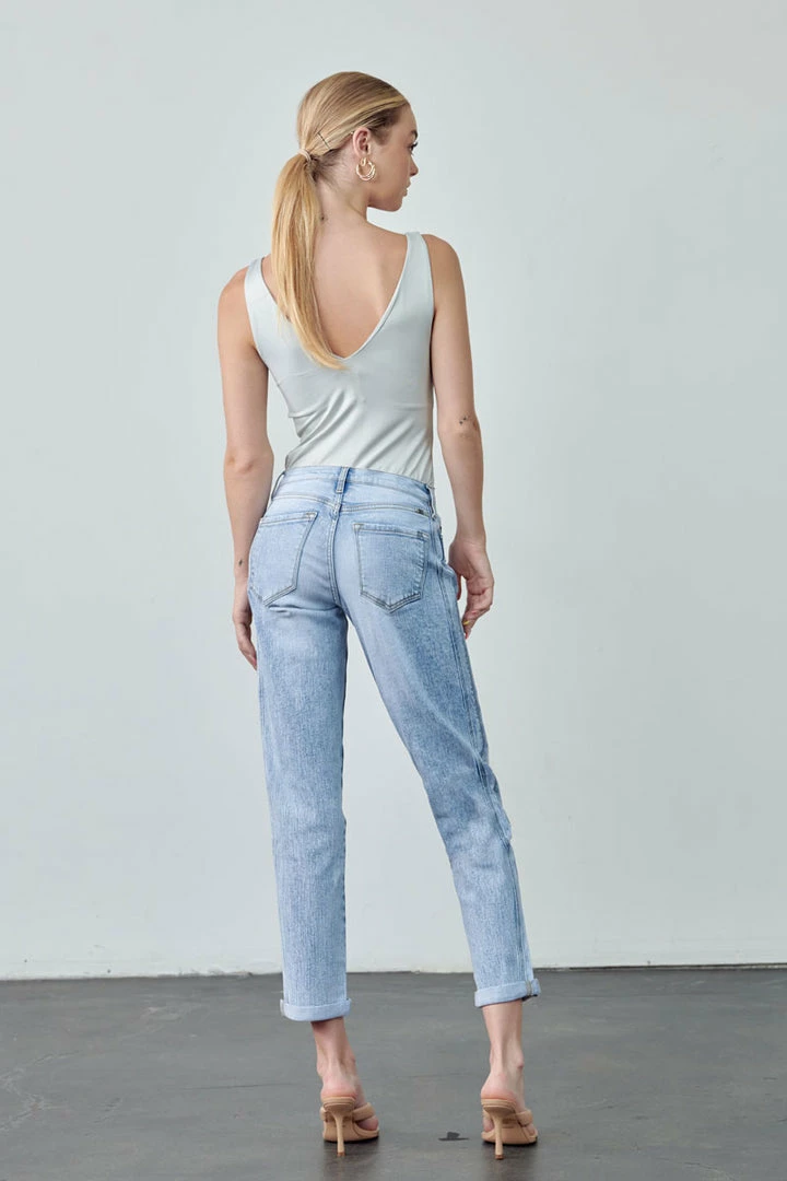 A chic boyfriend cut with tattered distress and a folded hem. Our Tatum High Rise Jeans create a comfortable look that’s versatile in style and design. Sits above the natural waistline as it relaxes down the leg for a relaxed feel. Made with comfort-stretch denim that holds its shape while allowing you to move with ease. Features a classic five-pocket design, single-button front, and zip-fly closure.