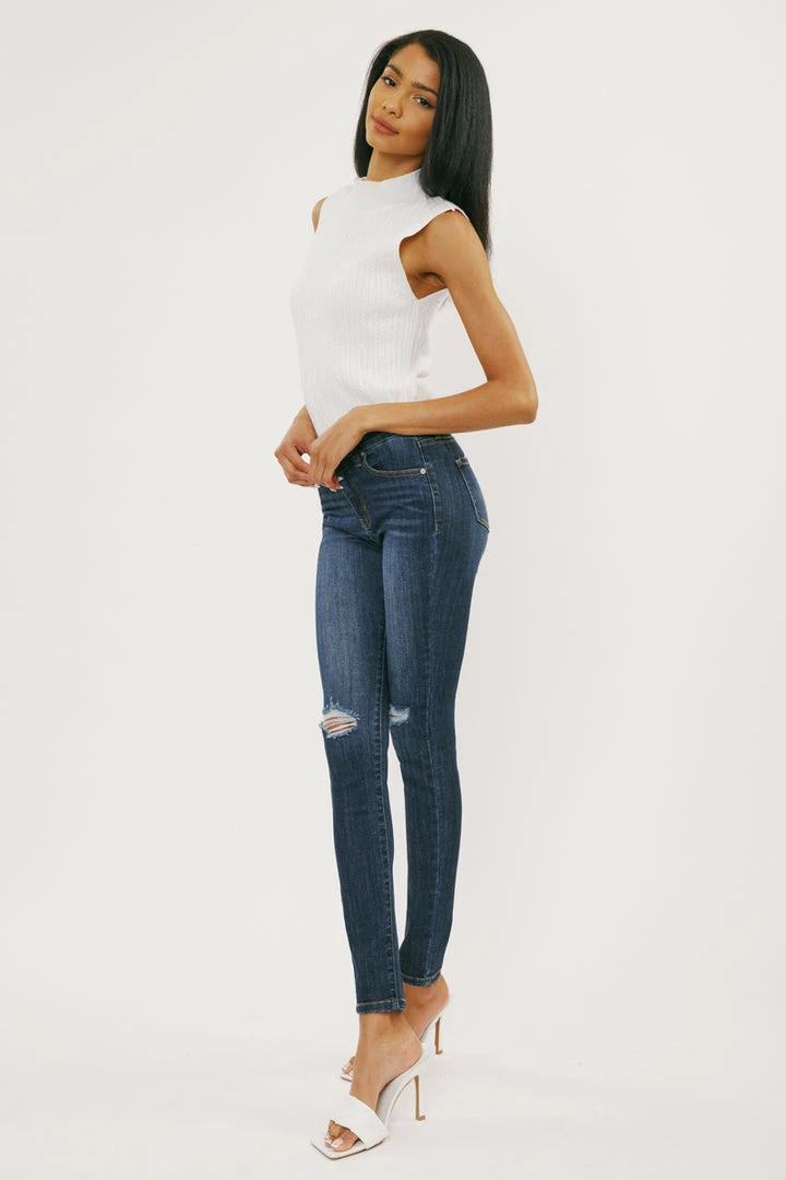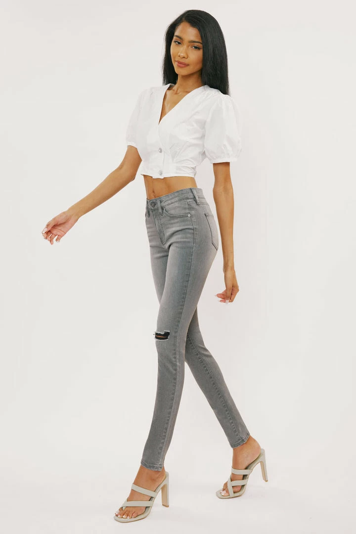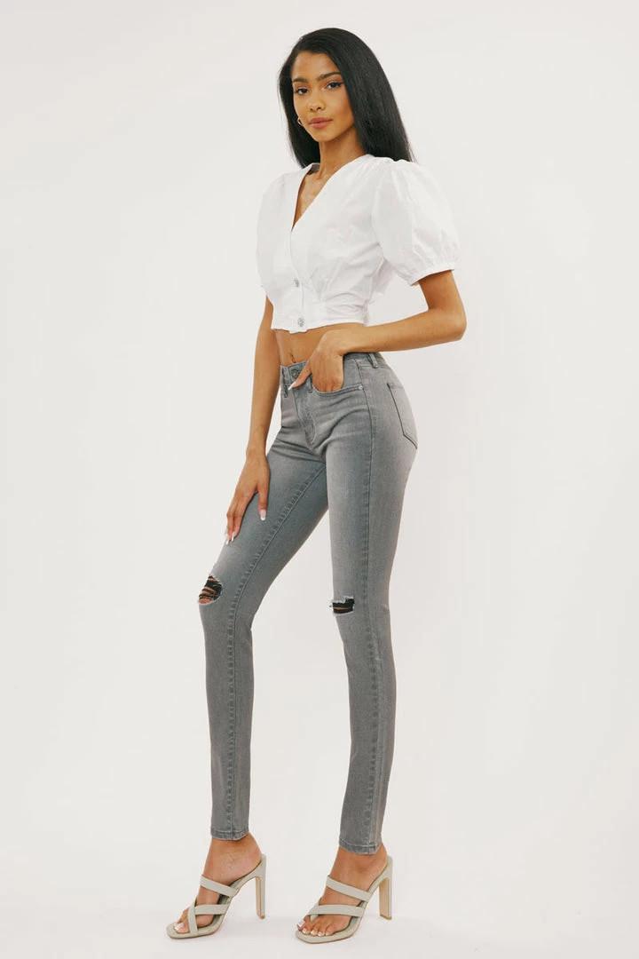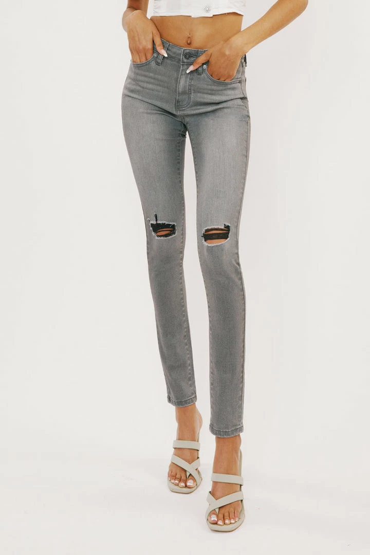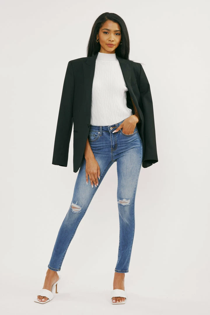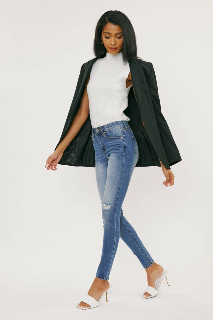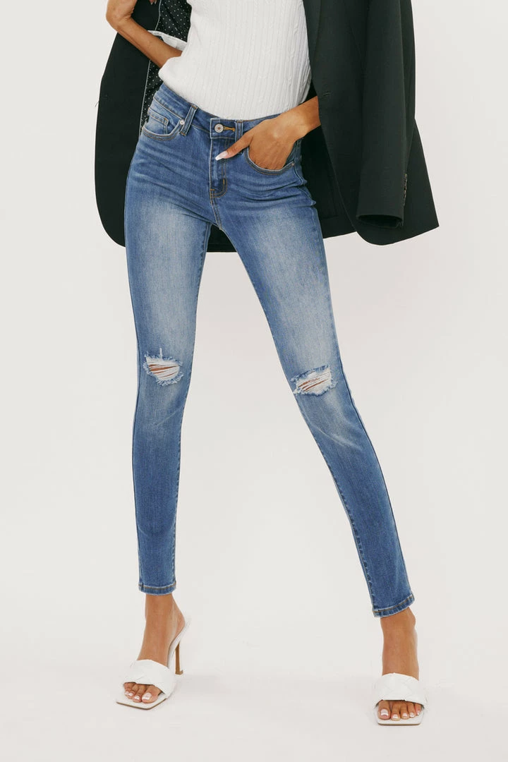 Our Logan skinny jeans come in a classic skinny jean fit available in various washes featuring fading, whiskering, and just the right amount of distress detail. Sits right at the natural waistline and hugs every curve with its super stretchy denim blend that will help you move with ease and comfort. Features a classic 5 pocket design, single-button front closure, and a zip fly.