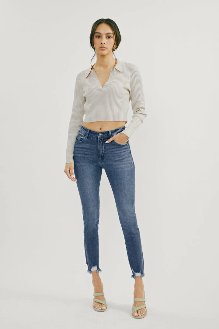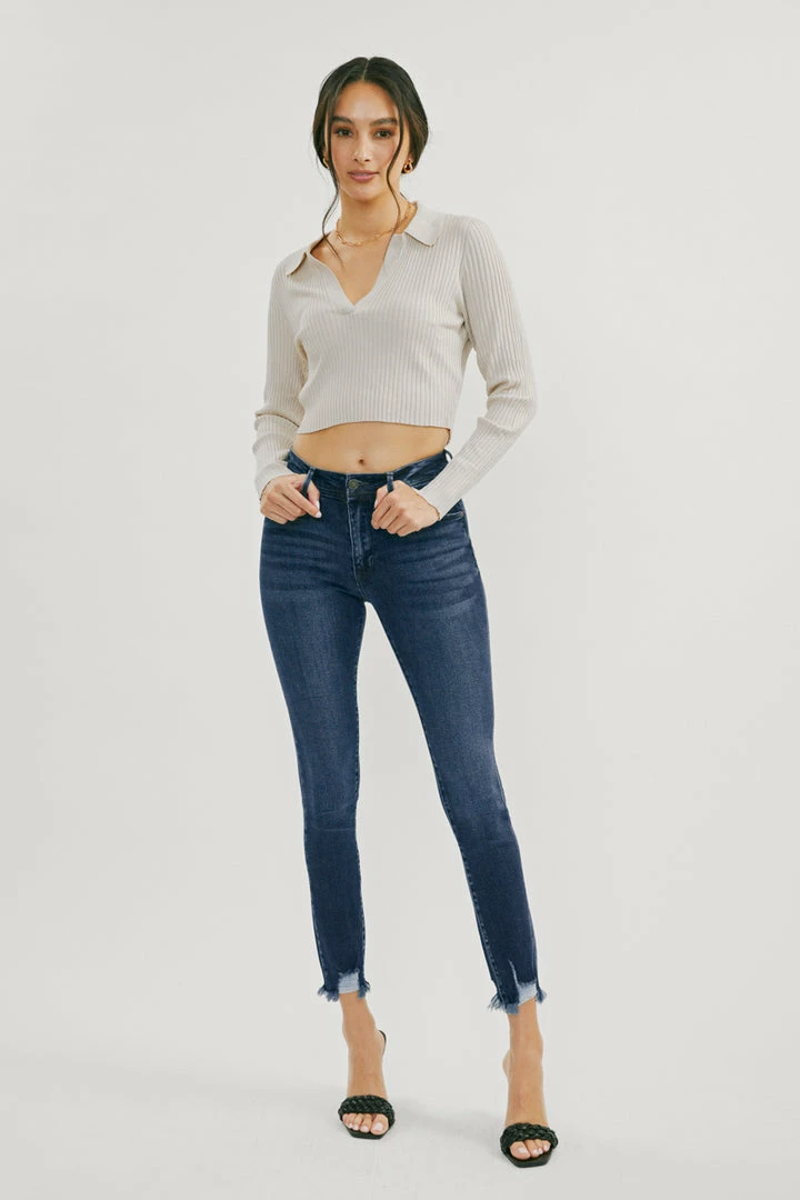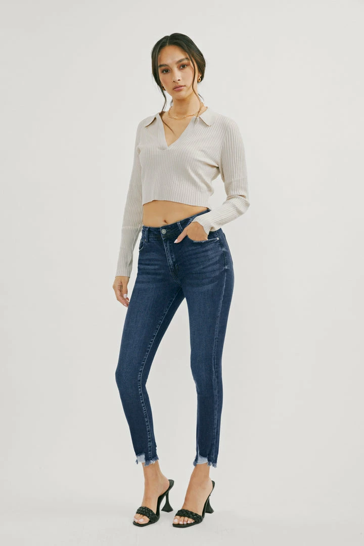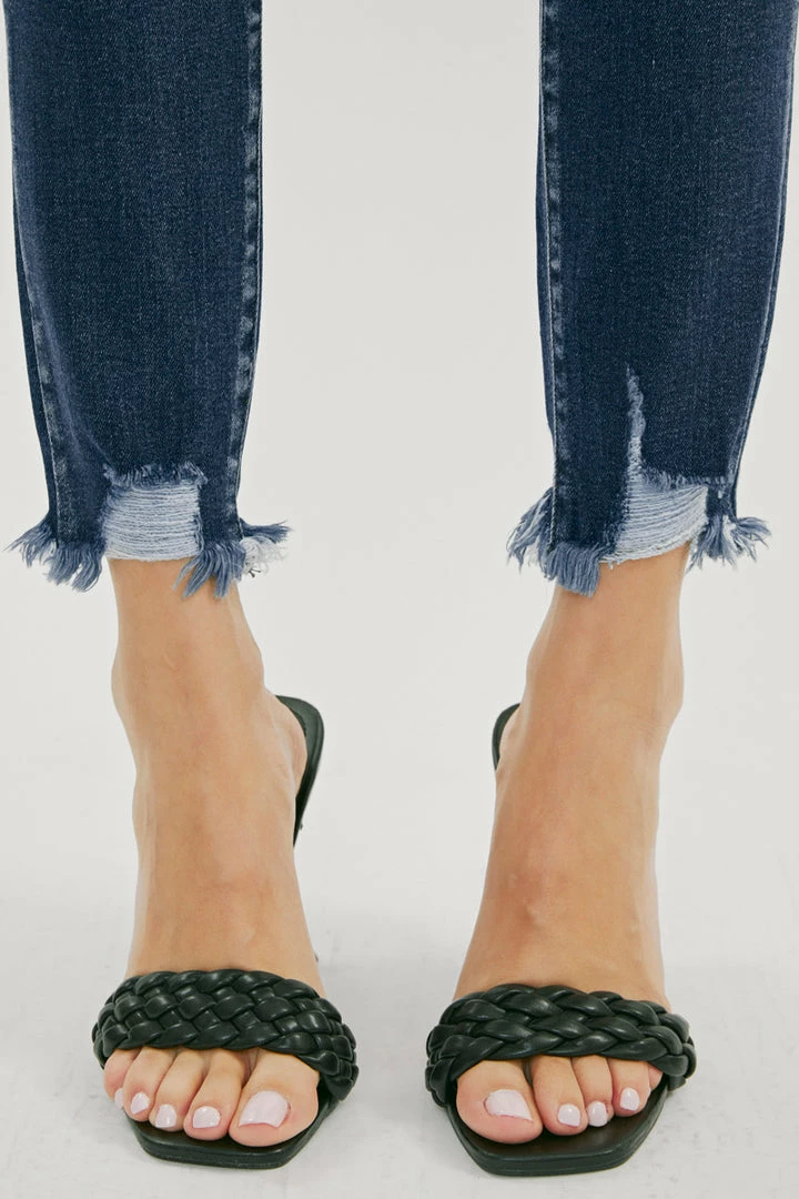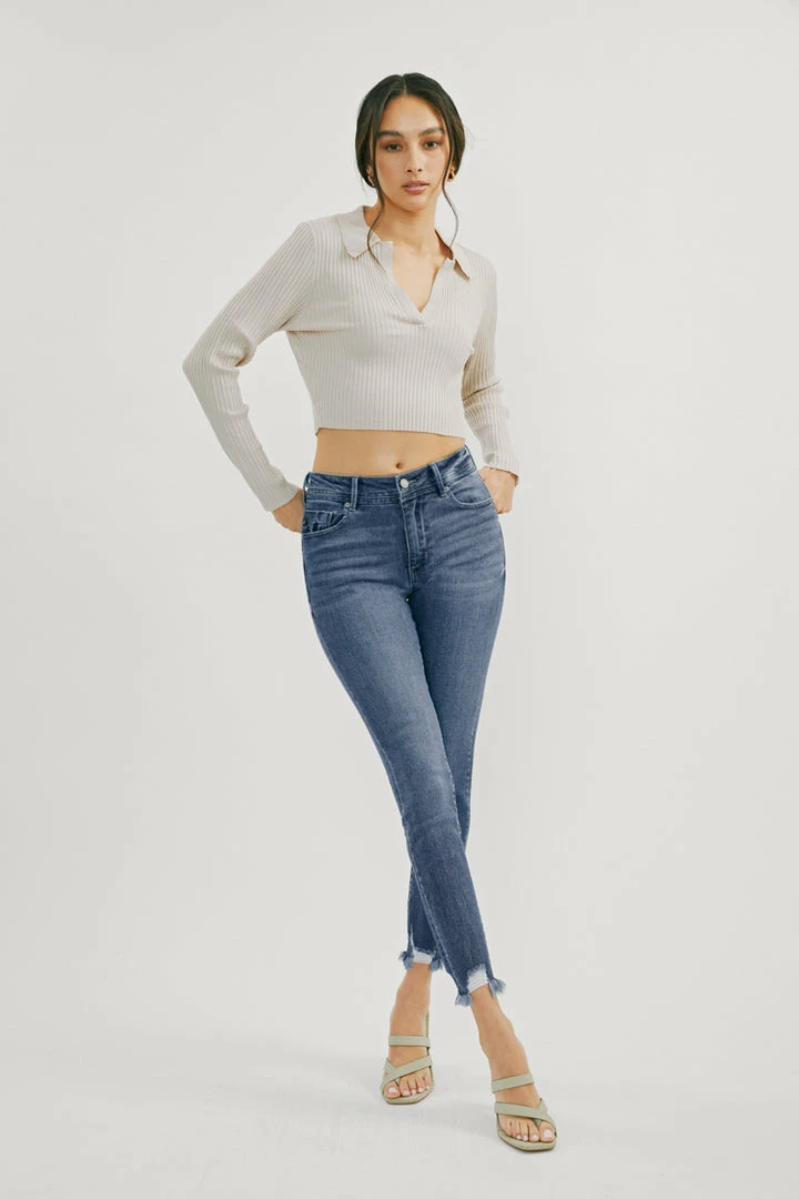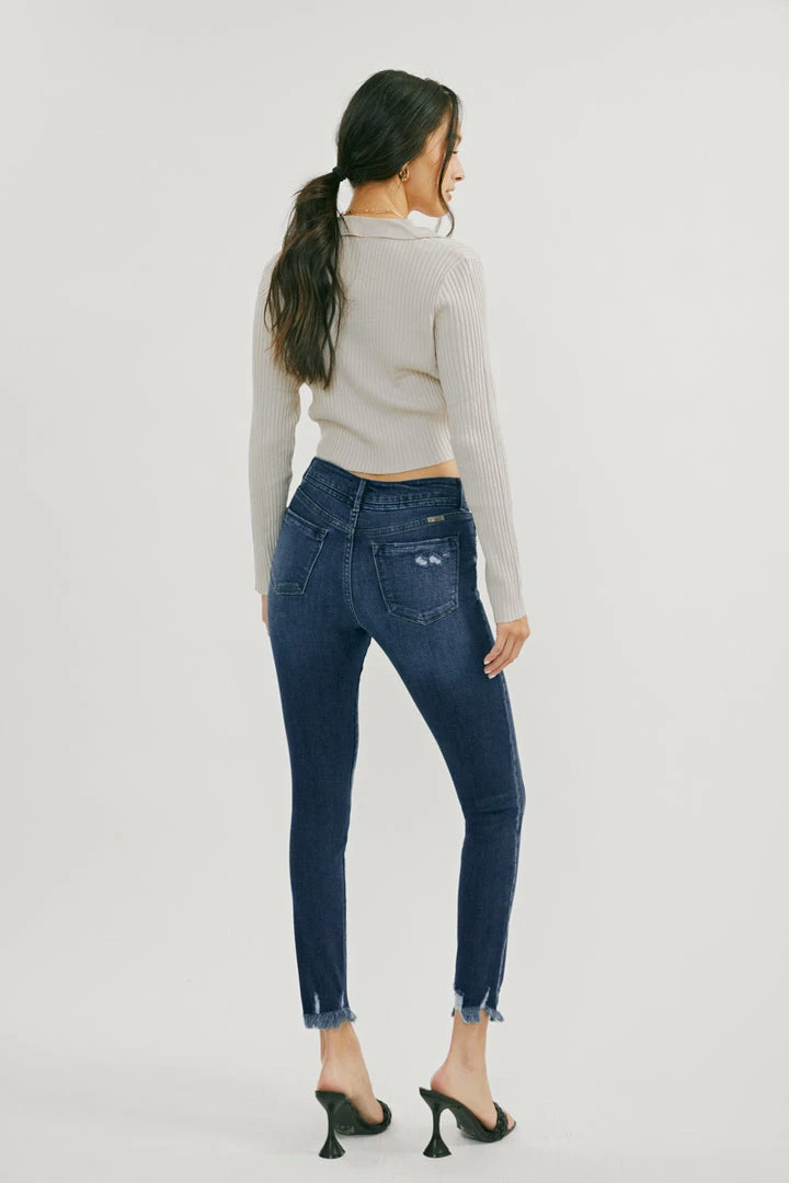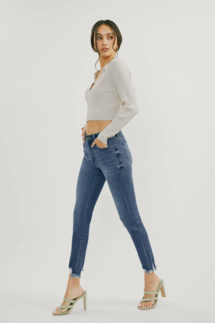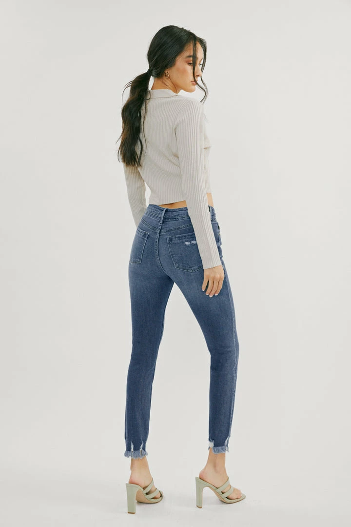 Our Lucia High Rise Ankle Skinny Jeans come with whiskering and raw hem details for a subtle lived-in look that’s perfect for any occasion. Made with stretch denim that holds its shape while allowing you to move with ease. Sits above the natural waistline as it tapers down the leg for a classic skinny jean silhouette that hits right at the ankle for a fun and flirty style. Features a classic five-pocket design, single-button front, and zip-fly closure.