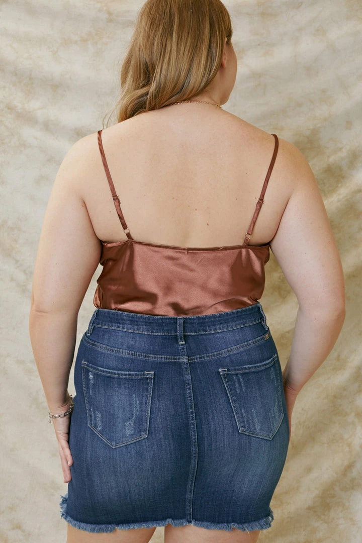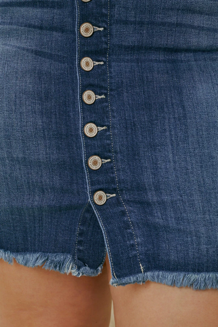 Our Lucy Fringed Hem Mini Skirt gives off a classy vibe with a flattering silhouette. Featuring a high rise fit that cinch and accentuates your waist, fading, frayed hem, 5-pocket design, and complete button-down closure.