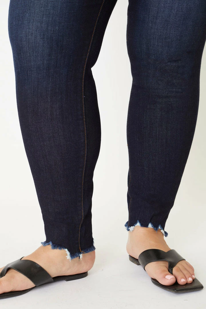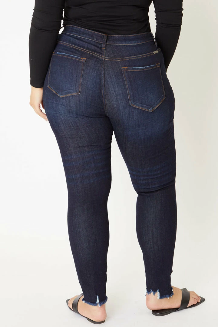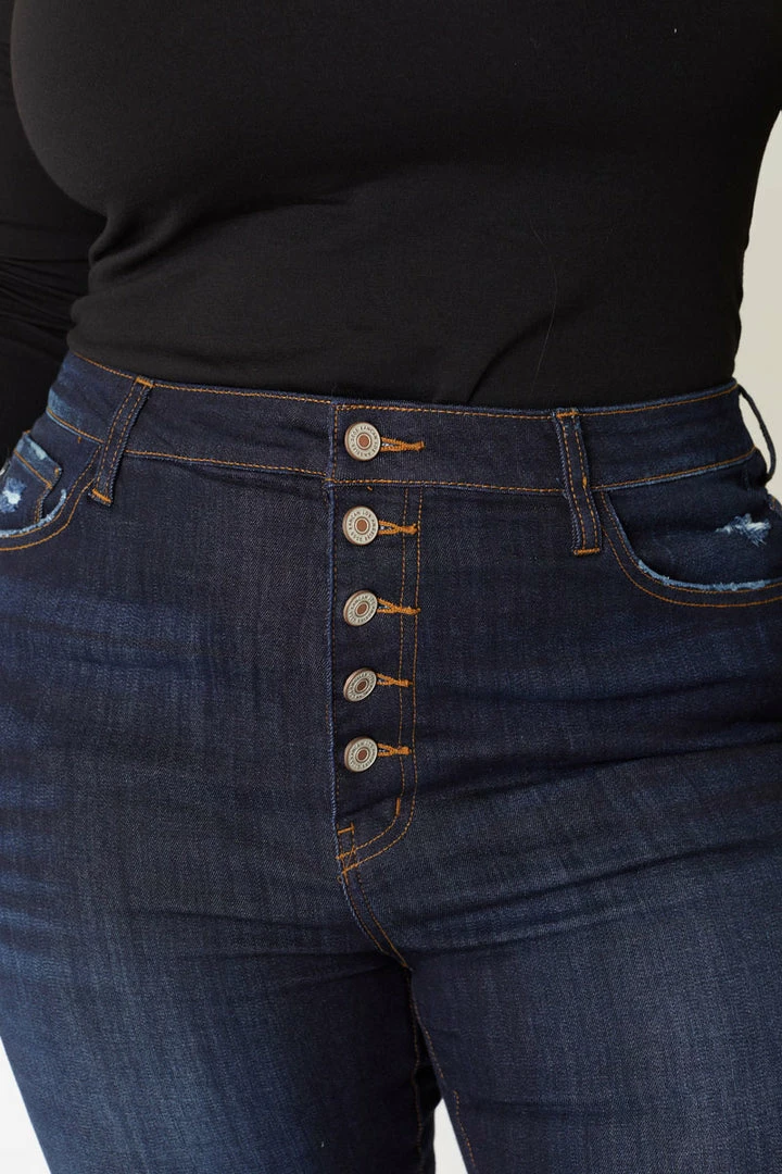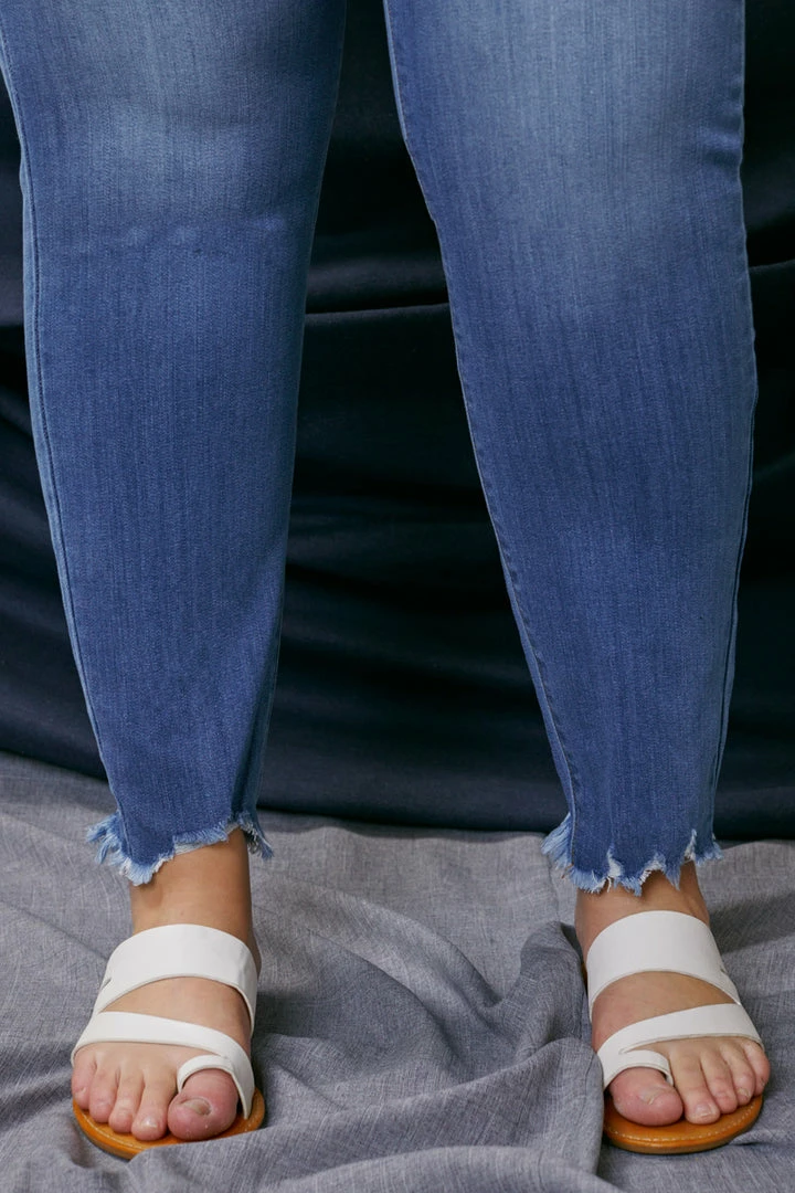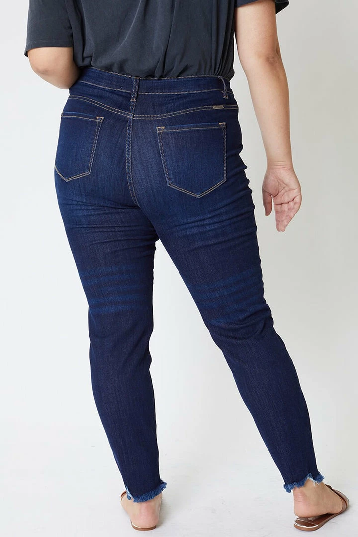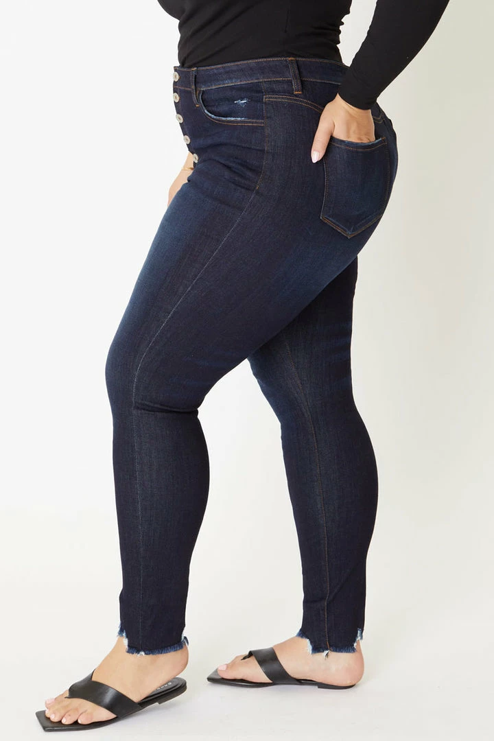 Our Martha High Rise Jeans come in a super skinny cut with a lightly faded wash available in medium, dark, and super dark. Sits high above the natural waistline as it tapers down the leg creating a figure-flattering silhouette that hugs all your curves. Made with stretchable soft denim that’s smooth and durable. Features a raw hem classic five-pocket design and a five-button front closure.