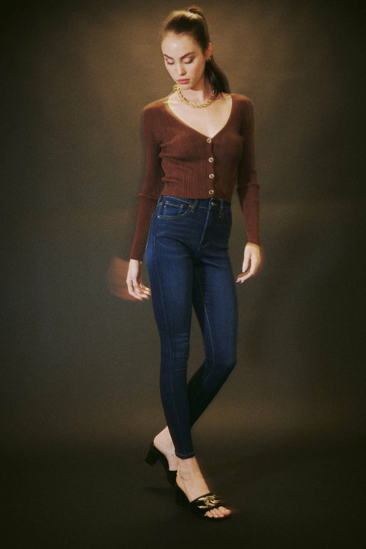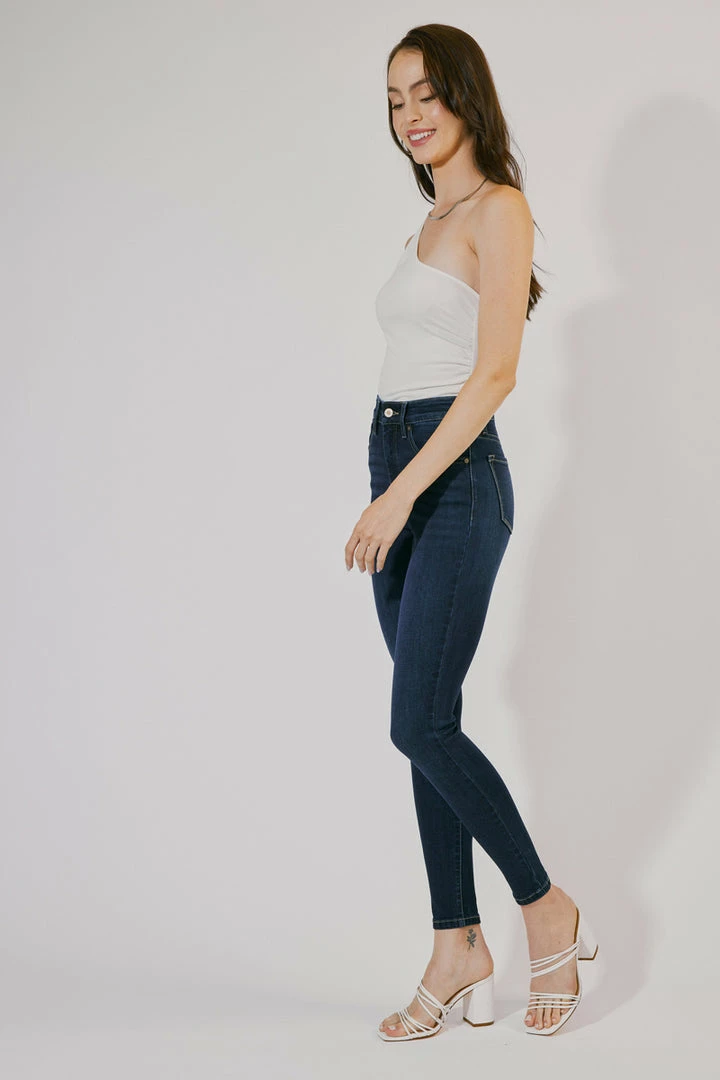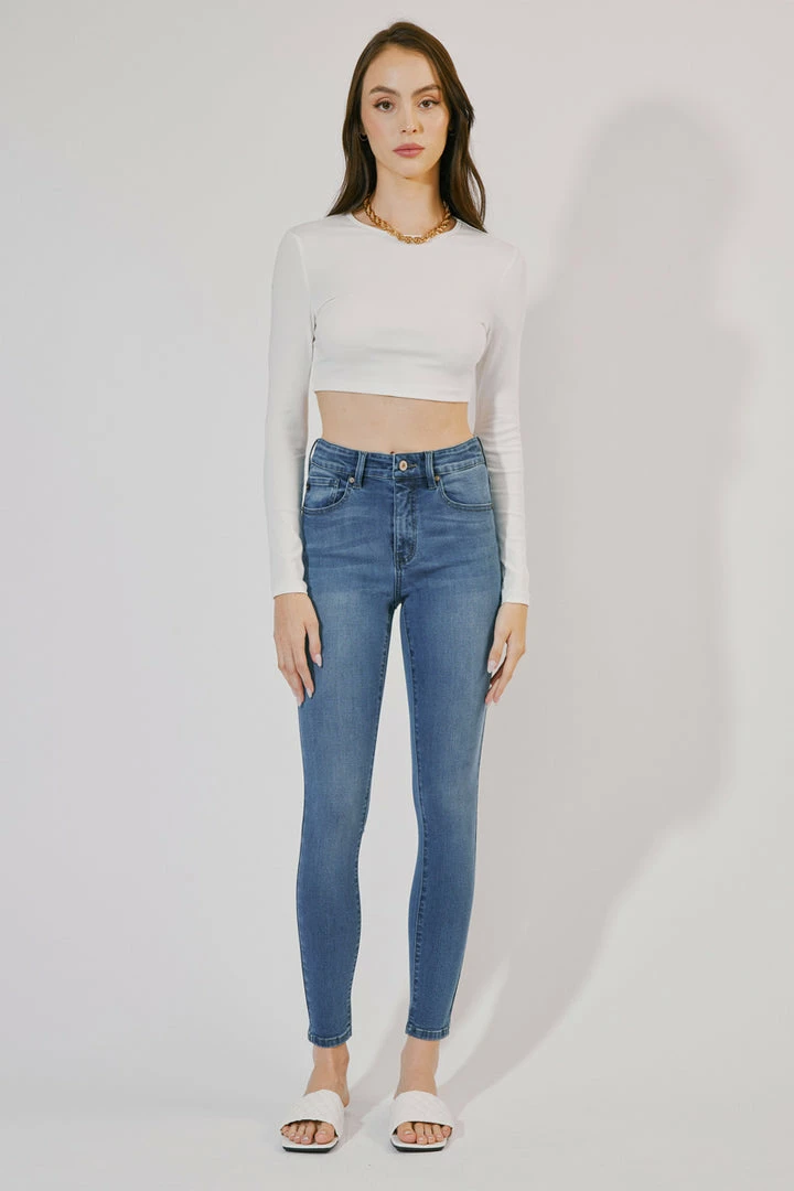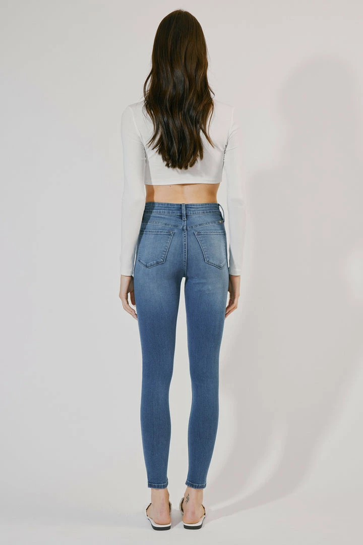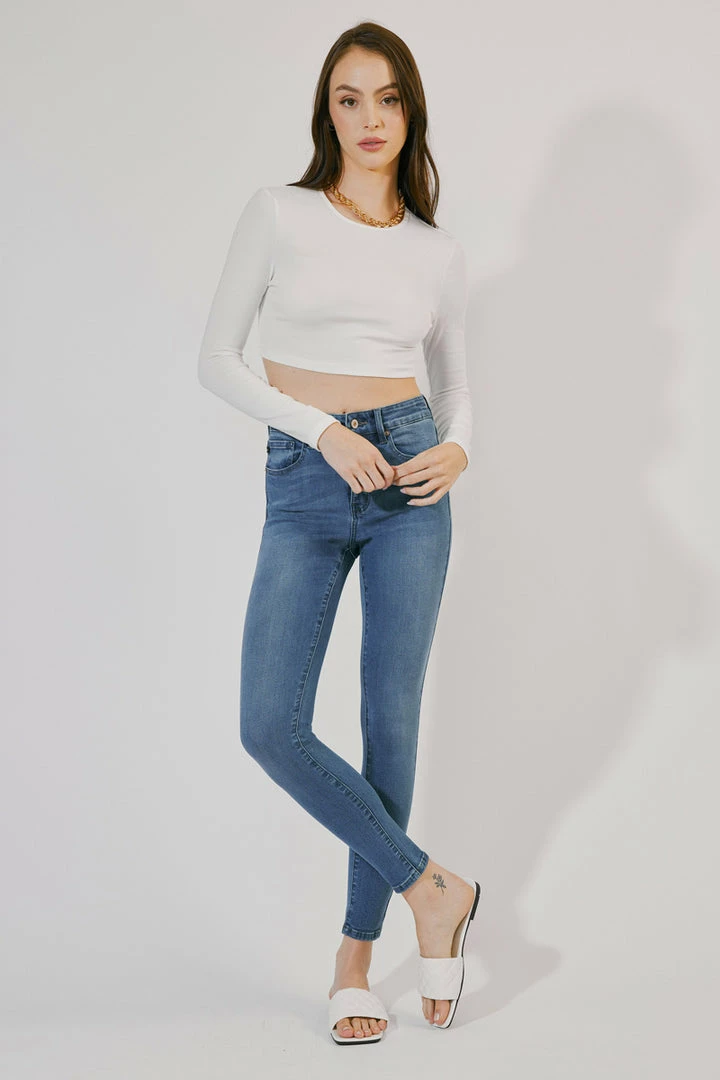 How cute is this triple button super skinny? Rock it with any of your favorite tops! Featuring whiskering, fading, 5-pocket design, and zip fly closure.Â