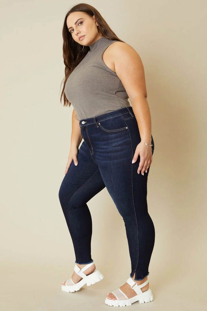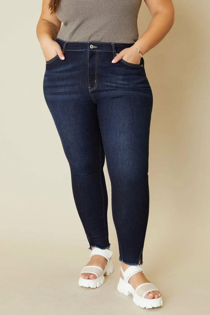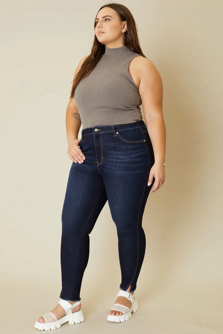 Our Naira Ultra high-rise ankle skinny is a simple yet versatile addition to any wardrobe! Featuring fading, whiskering, slightly distressed details on the left knee, 4-pocket design, and 5-button fly closure.