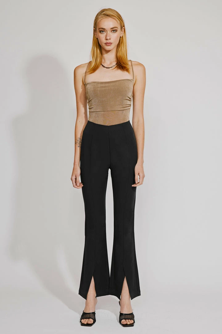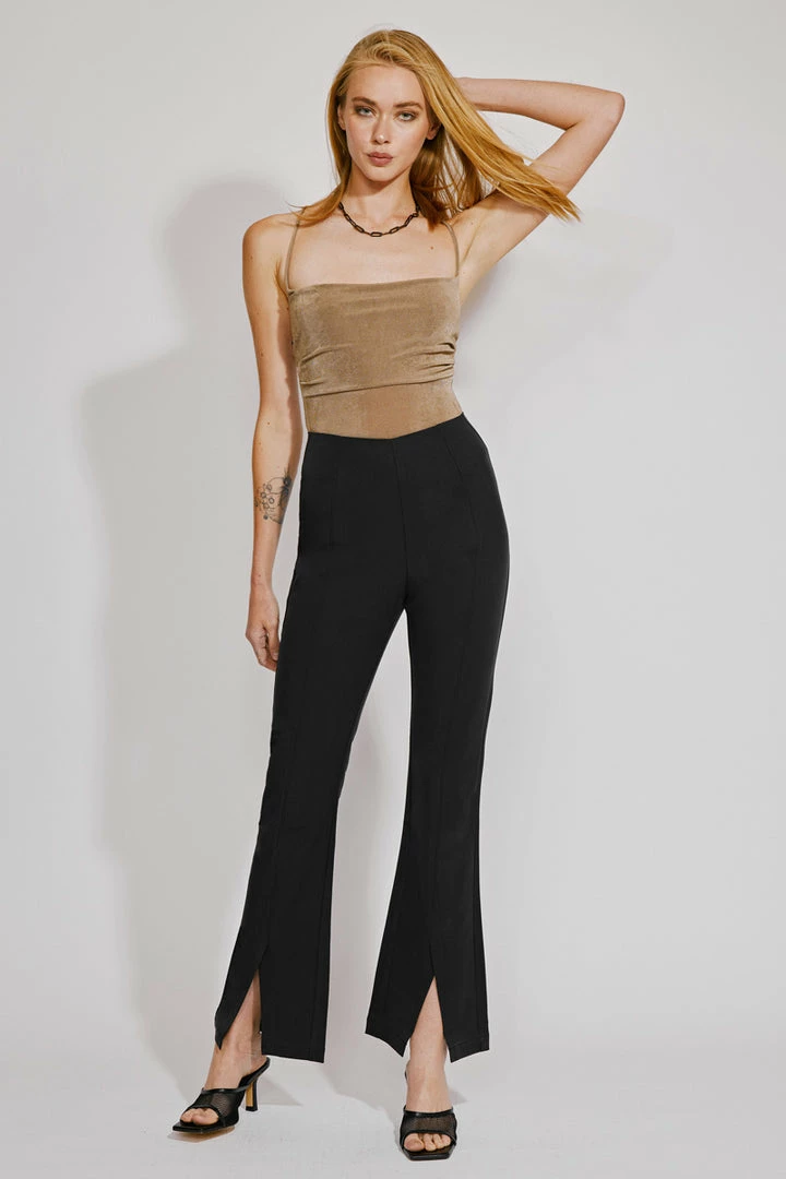 Our Brenda Ultra High Rise Flare pants are sleek and sophisticated perfect for office wear or a night out on the town. Features a front slit for the next level of style a hidden zipper with a hook and eye closure.
