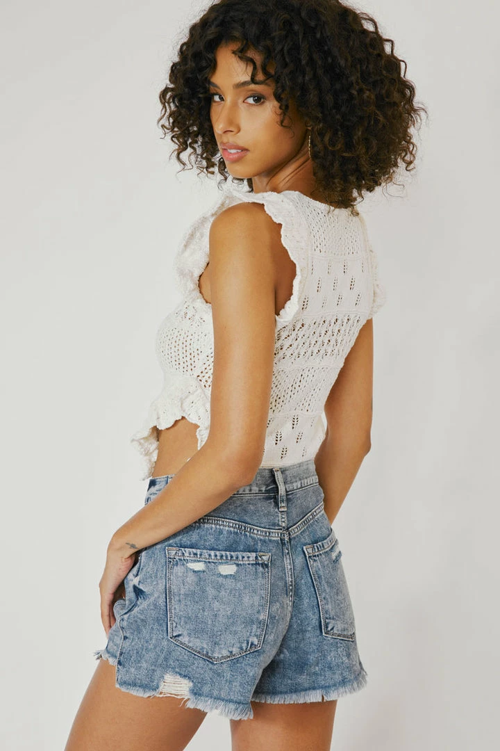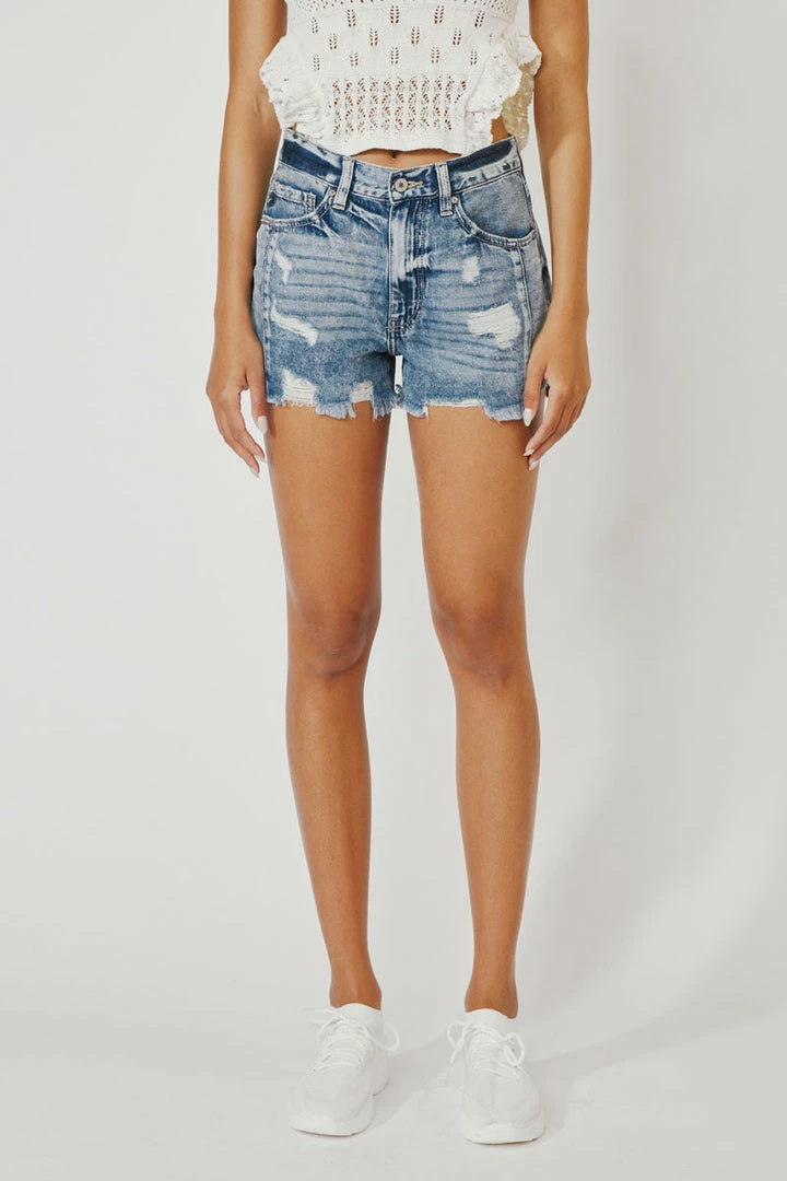 Give your wardrobe a stylish boost with our Stacey High Rise shorts. You can create an easygoing look that goes with any top, perfect for dressing up or down! Features a distressed frayed hem, front seam and unique wash detailing, fading, whiskering, 5-pocket design, and a single button front closure with a zip fly.