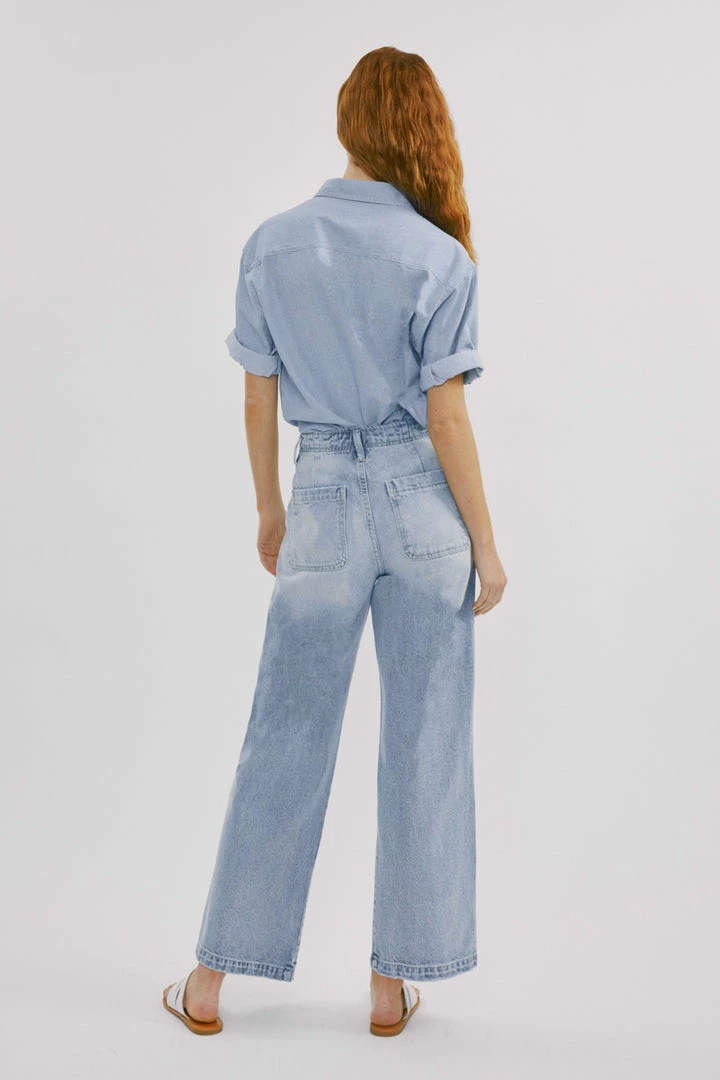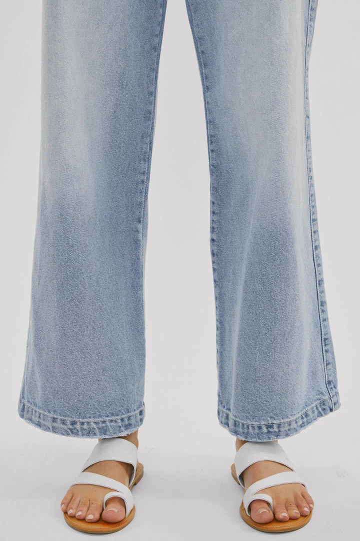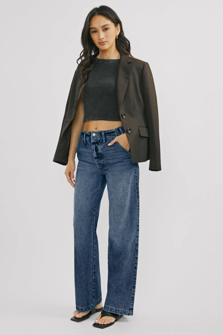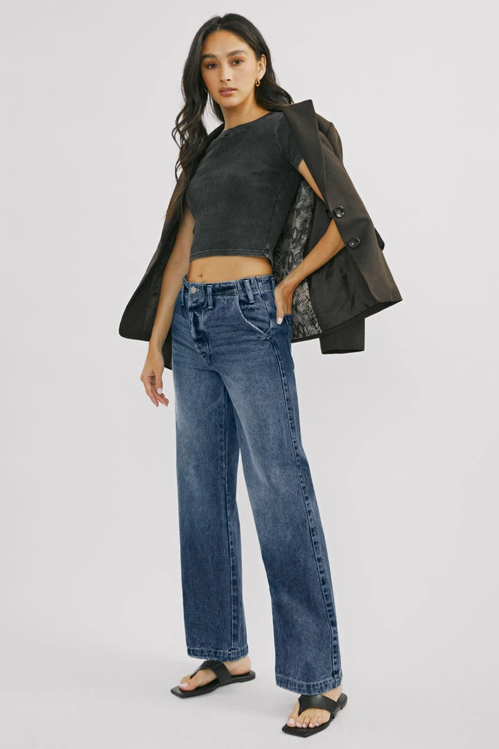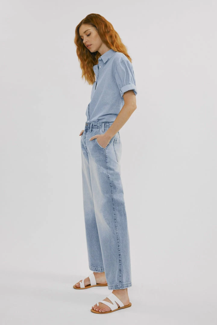 A faded dark and medium wash 90’s wide-leg jeans made with nonstretch rigid denim that is durable and is easy to move around in. Our Sterling jeans are the perfect addition to the 90s collection. It’s breathable, comfortable, and is fashionable. Comes with a 4 pocket design, a single button front, and a zip fly closure.