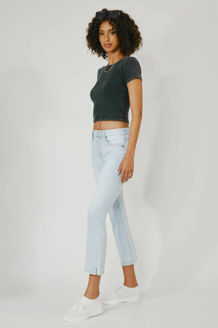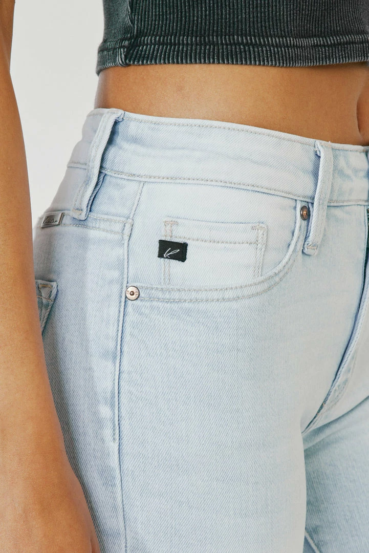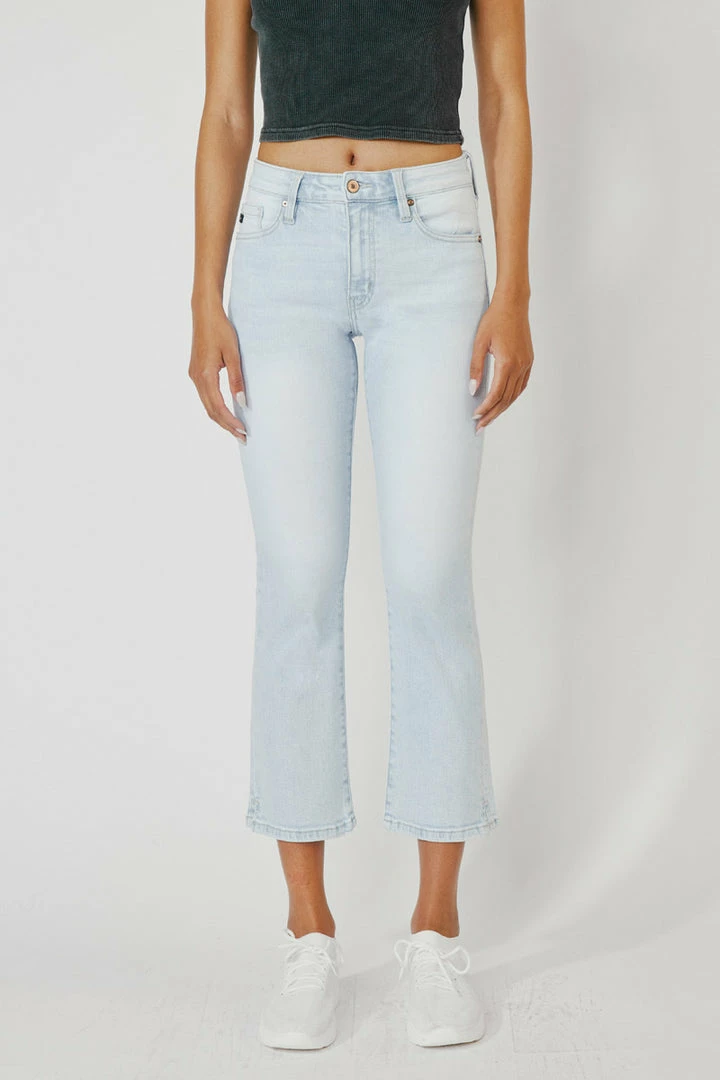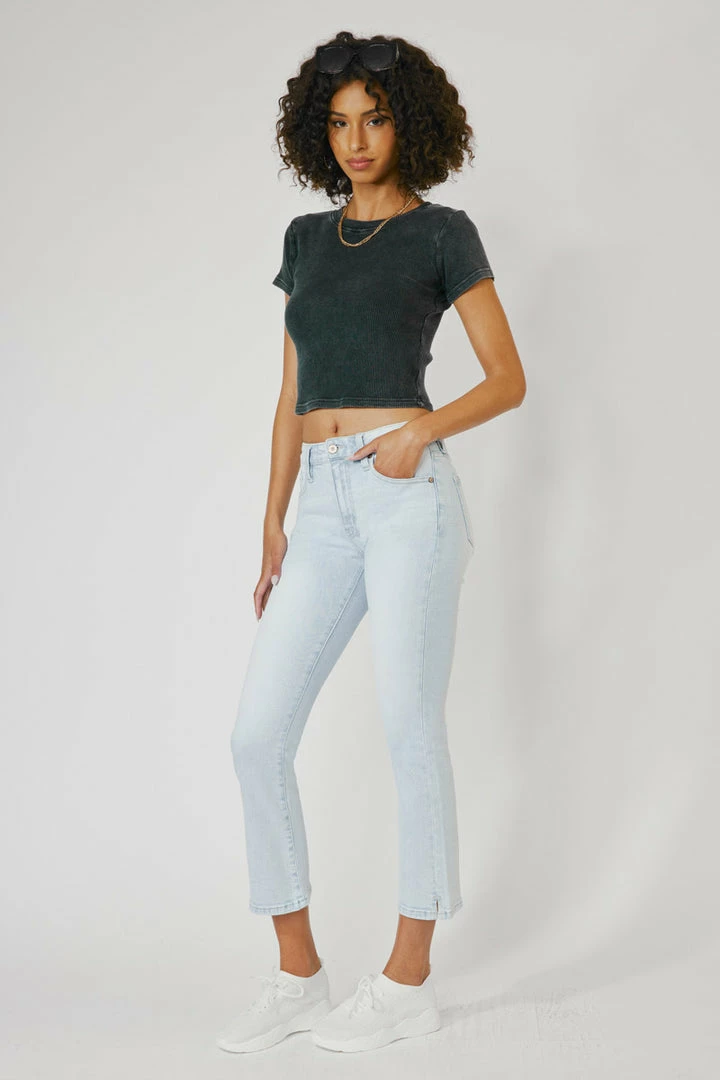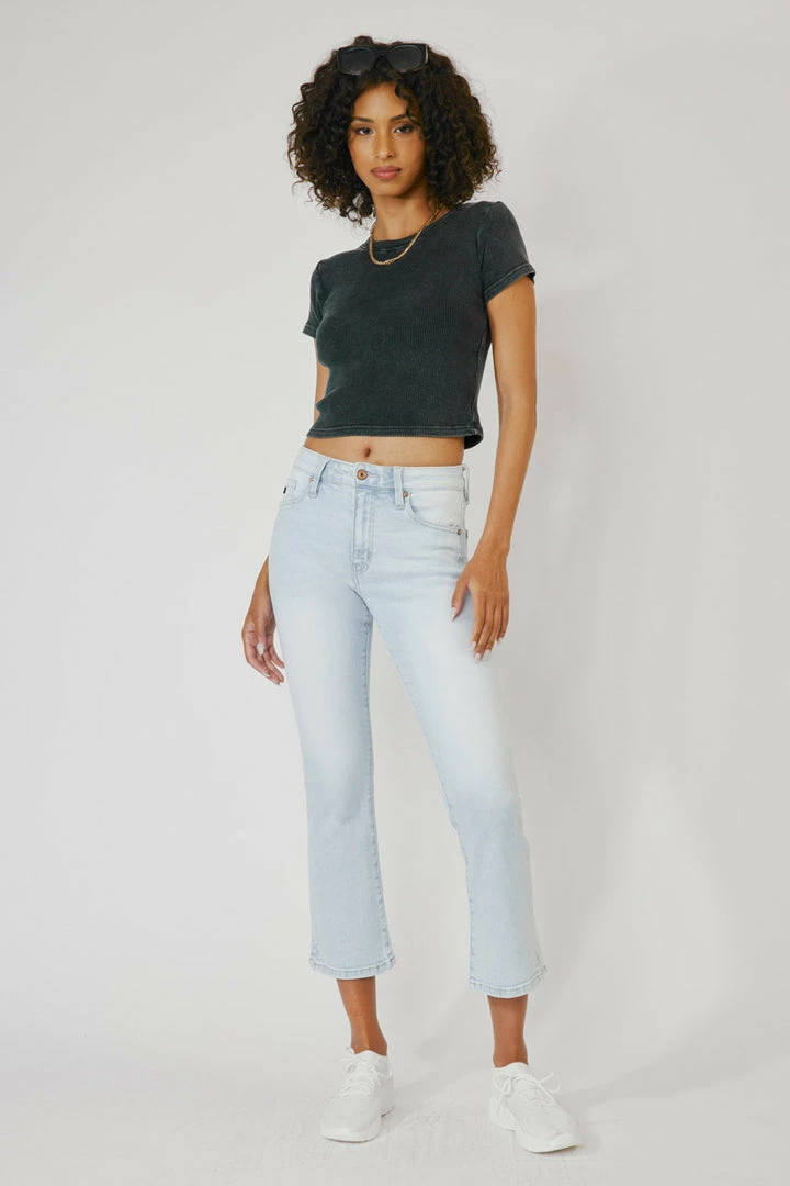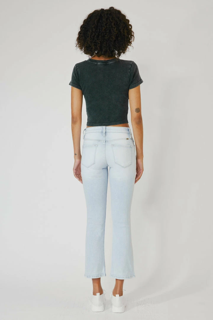 Our Tiany High Rise Jeans come in a cute kick-flare fit that flirty and fun style will make any outfit pop. Sits above the natural waistline as it tapers down the leg and gently flares out at the ankle. This design is a must-have piece that’s versatile and trendy. Made with soft, stretch denim that’s flexible and retains its shape. Features a classic five-pocket design, single-button front, and zip-fly closure.