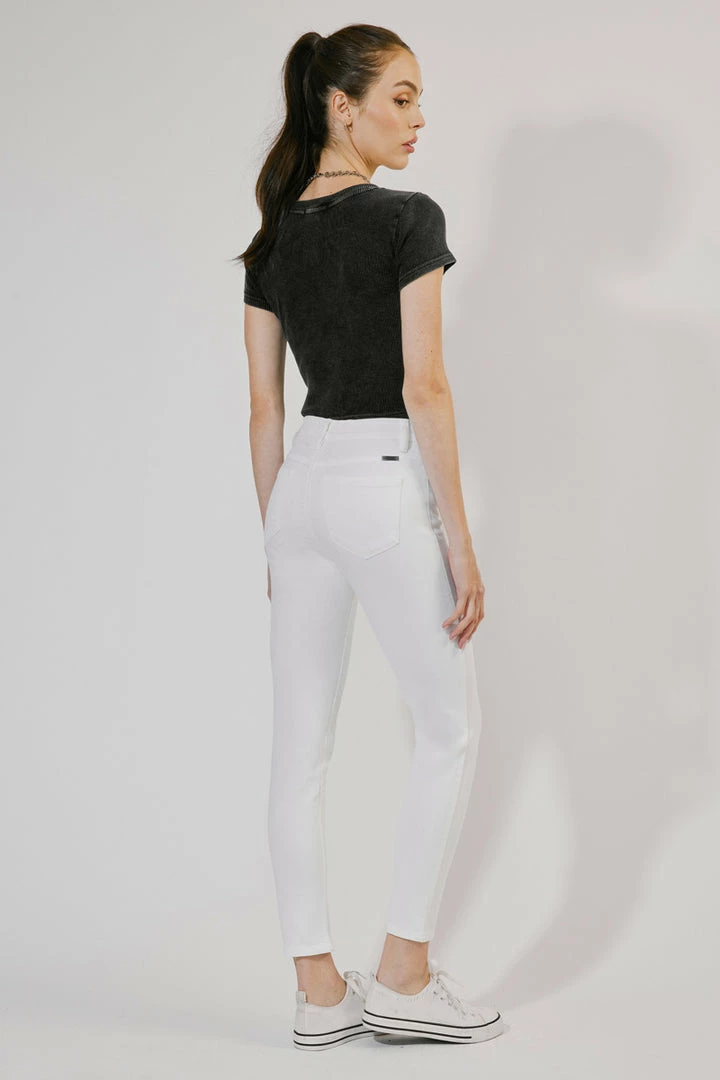 Get back to the basics with our Paige high-rise ankle skinny in this gorgeous denim piece available in white and black. With its simplistic style and non-distressed look, it’s a wardrobe staple every fashionista needs. Complete with the perfect amount of stretch and a tight fit from the waist down.