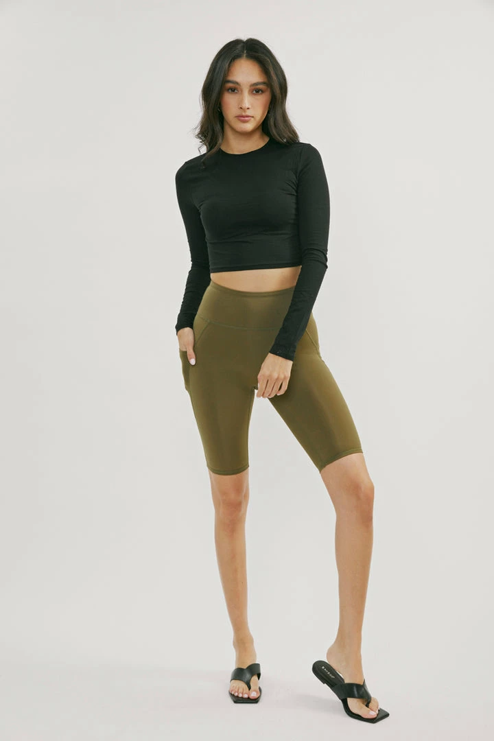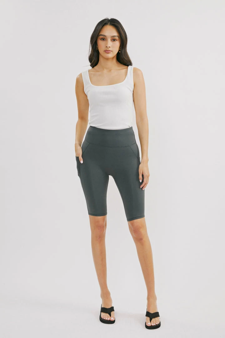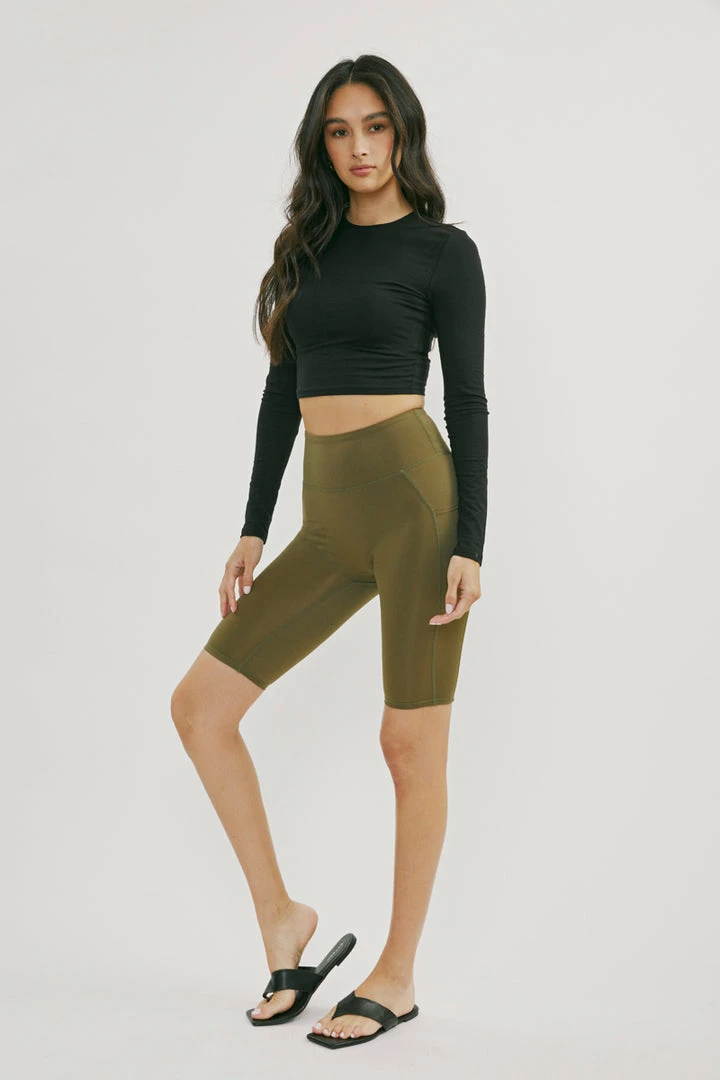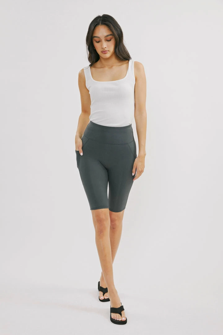 Perfect for a comfortable night at home or a trip to the gym. The Porsha High Rise Legging shorts are form-fitting made with soft fabric that your body will melt into. You will fall in love with these the minute you put them on.Â