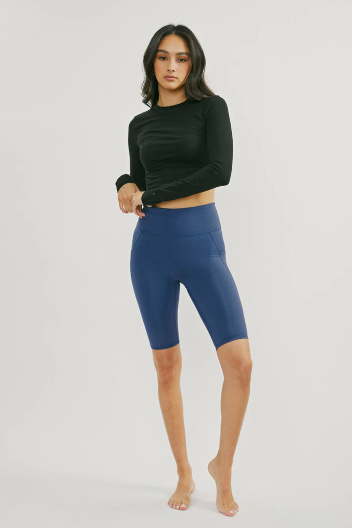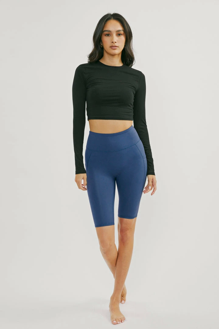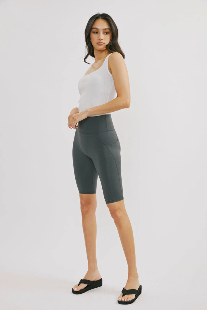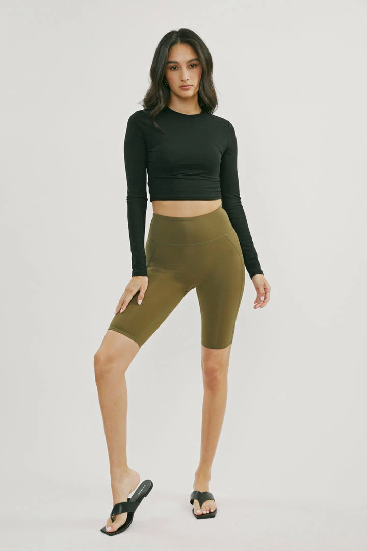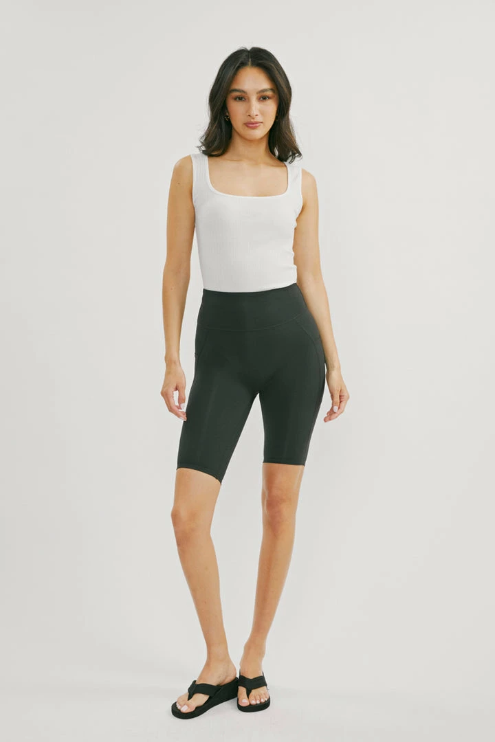 Perfect for a comfortable night at home or a trip to the gym. The Porsha High Rise Legging shorts are form-fitting made with soft fabric that your body will melt into. You will fall in love with these the minute you put them on.Â