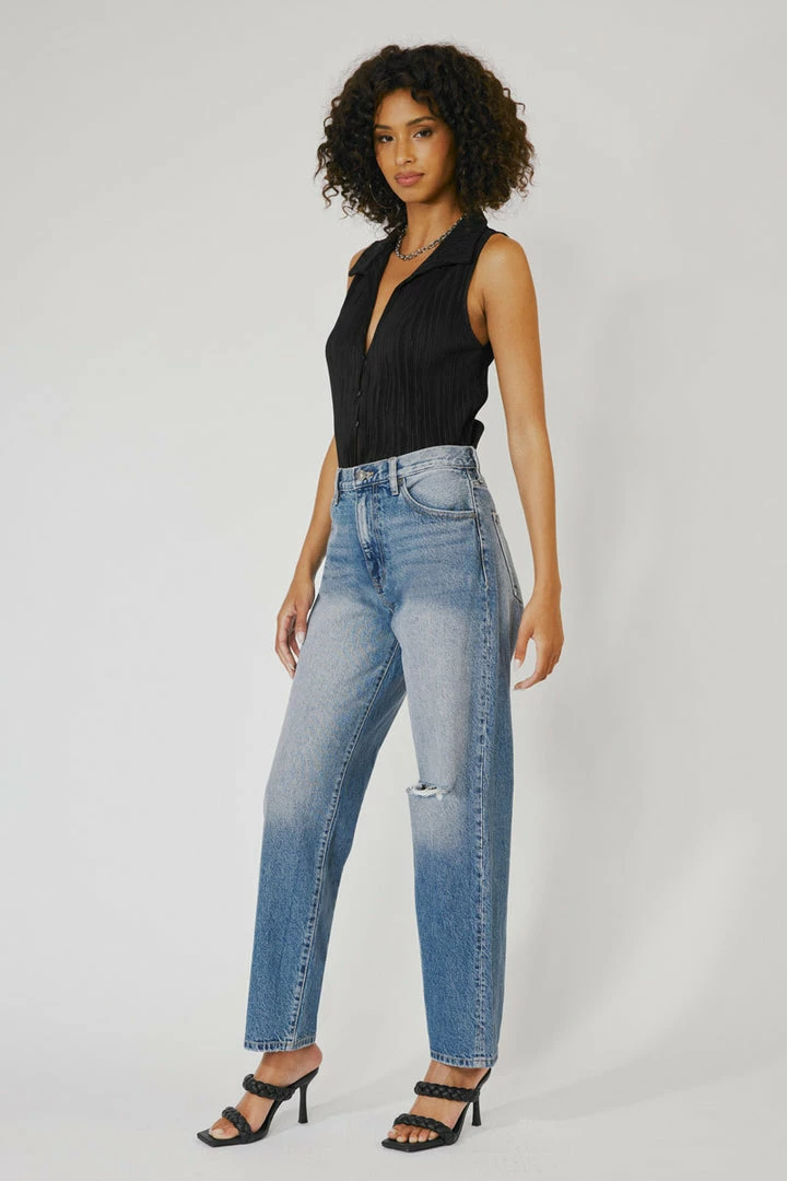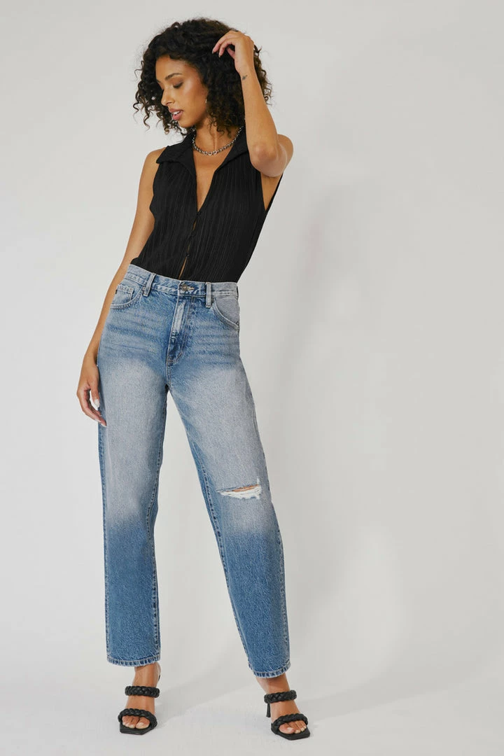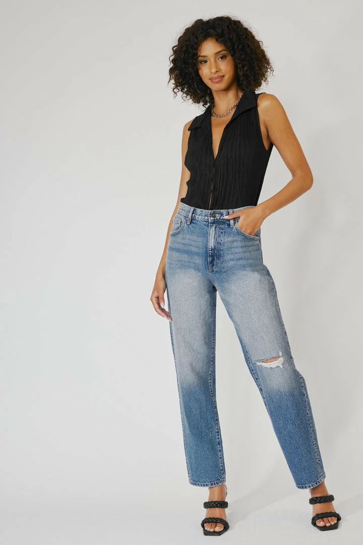 Our Quincy High Rise jeans come in a classic dad jeans fit. With a slightly dropped crotch design, it gives a comfortable and stylish look. Made with stretch denim that moves with your body as it maintains its shape even after multiple wears. Features a classic five-pocket design, single-button front, and zip-fly closure.