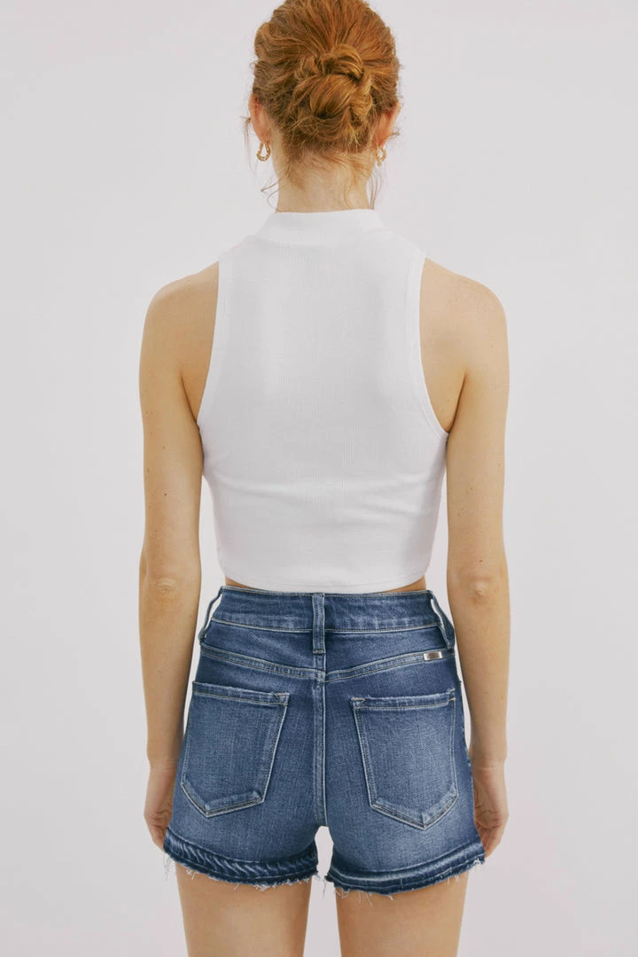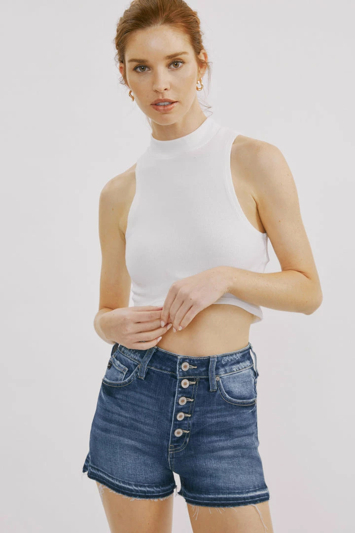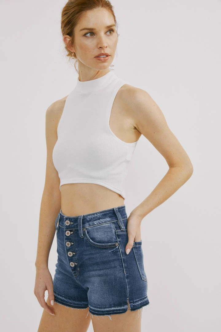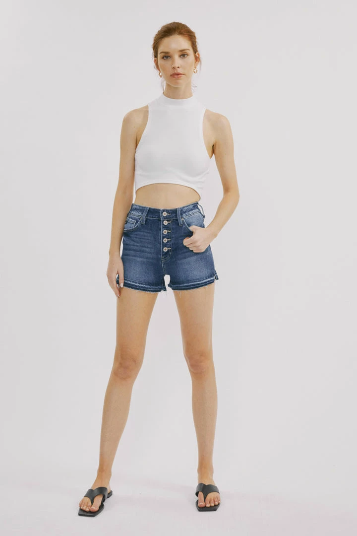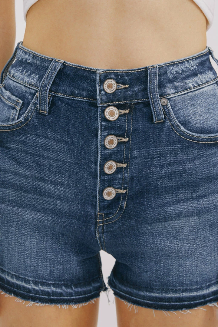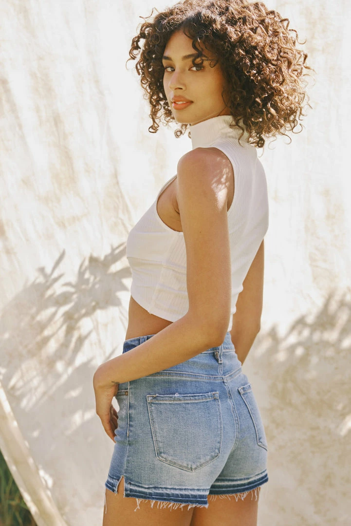 Enhance your summer style with our Roxie ultra-high-rise shorts! These comfy-chic shorts will take you through spring and summer days in simply sleek style. Featuring a lightly frayed hem, slit detail on both sides, whiskering, fading, 5-pocket design, and a 5-button front closure.