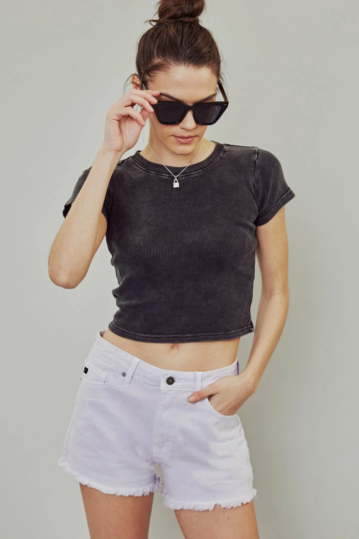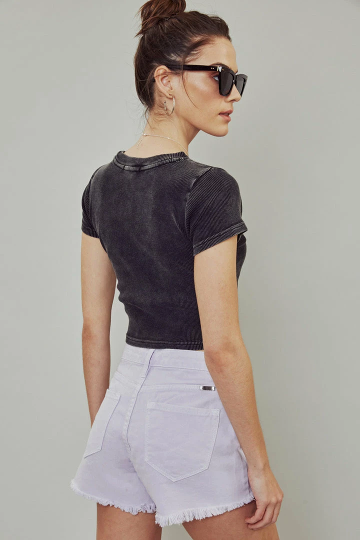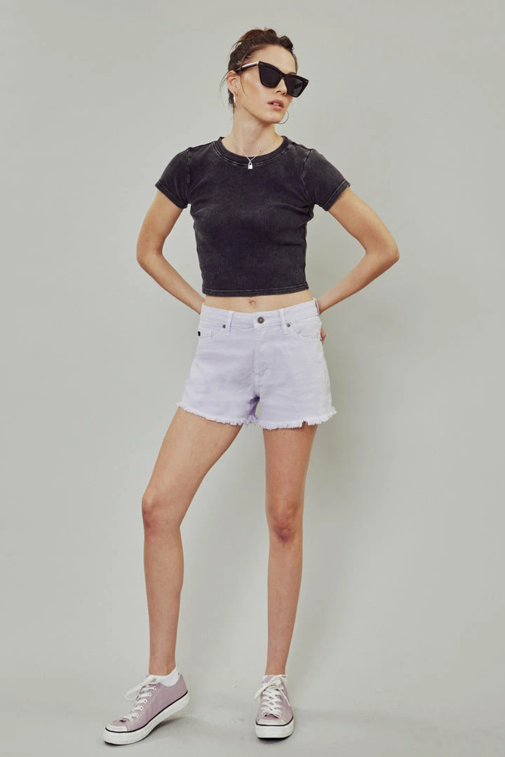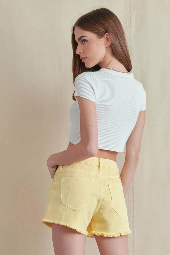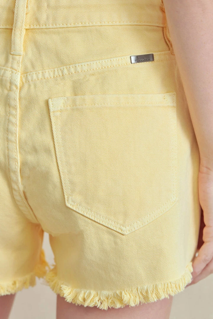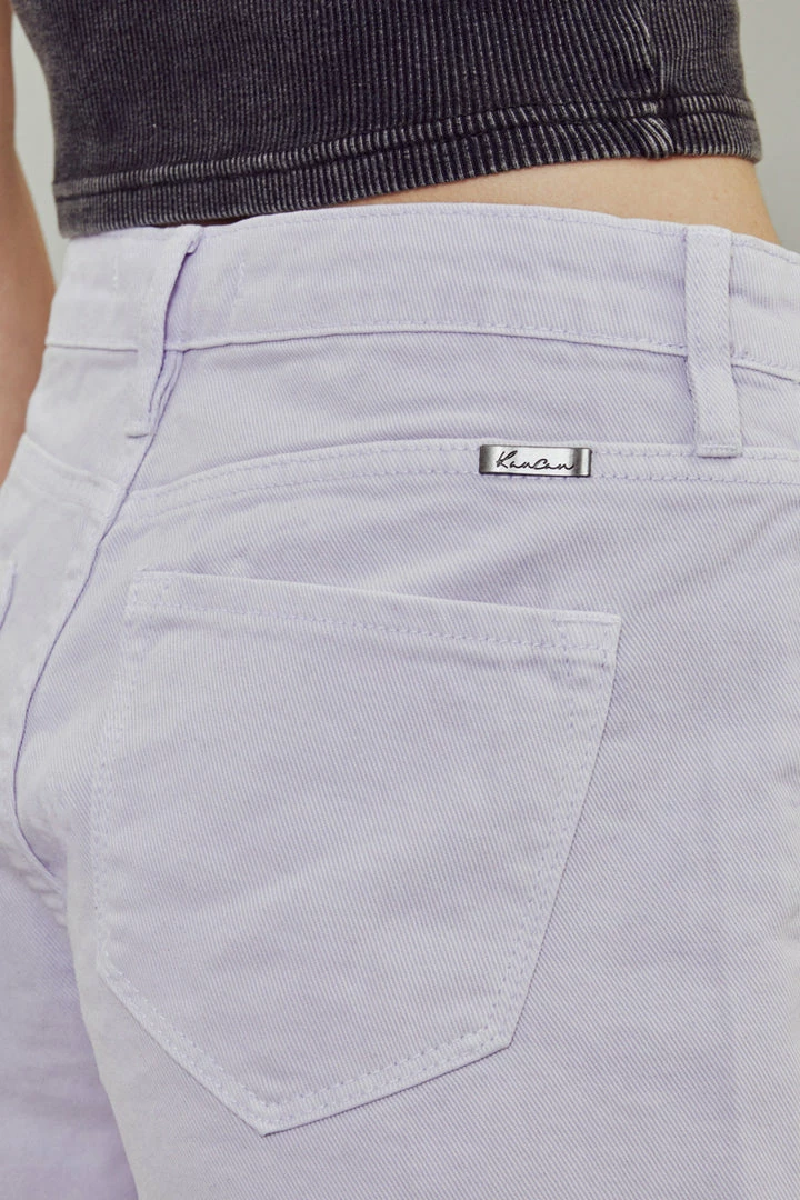 Modern styling meets a classic chic look that will complement simple tops. The waistband sits above the waist area that naturally hugs the hip and curves. Features a vibrant color in yellow or lavender, a regular 5 pocket design, single-button closure, and zip fly.Â