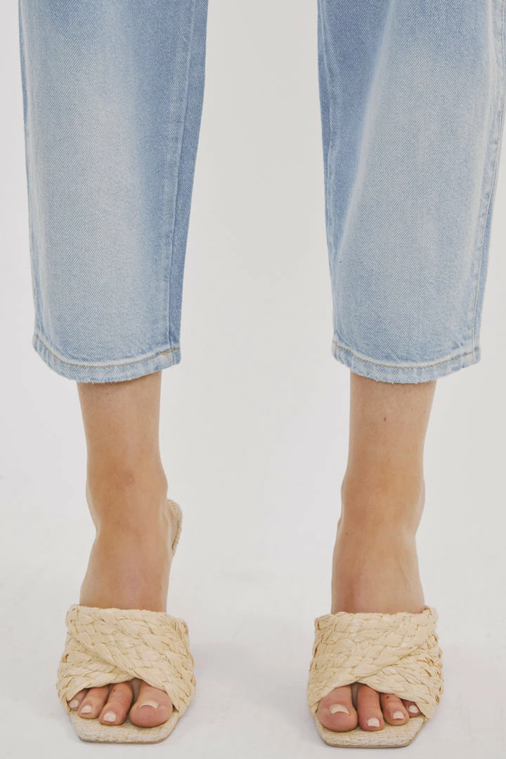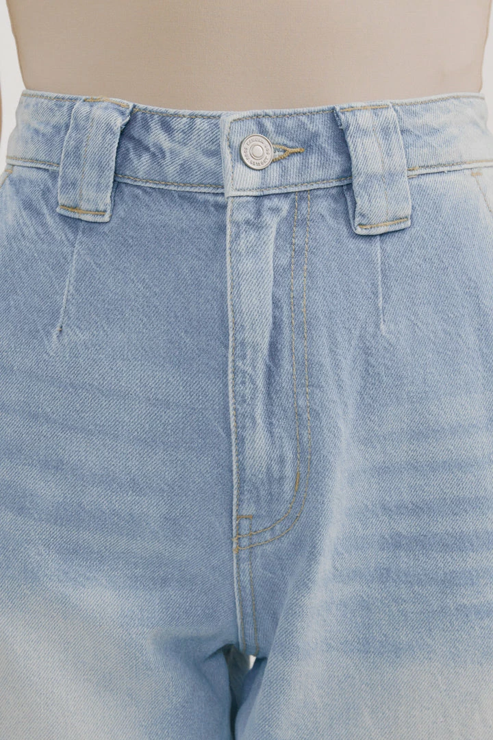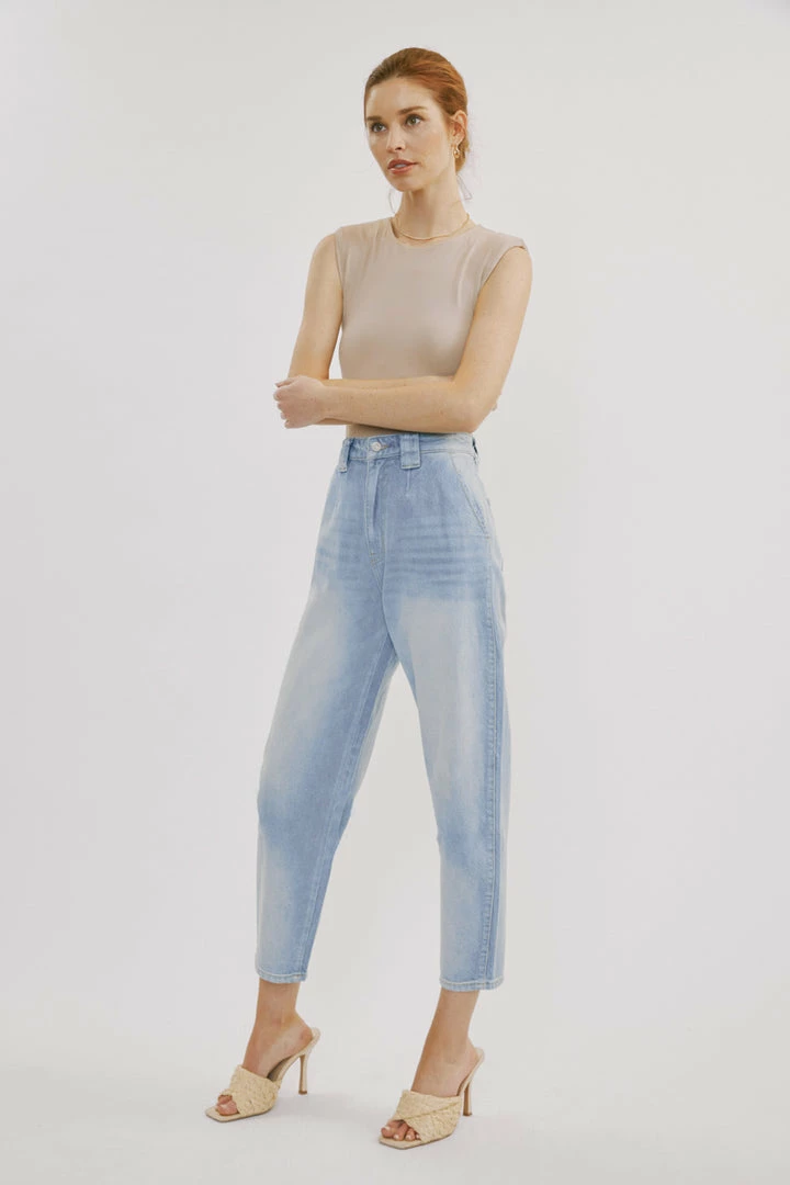 Light-washed denim with a curved taper fit and light fading. Our Neeko Ultra High Rise Jeans sit high above the natural waistline as they relax down the thigh and leg for a classic balloon fit giving your legs more than enough breathing room. A trendy style made with lightweight rigid denim that won’t lose its shape after each wear. Features a classic five-pocket design, single-button front closure, finished with a thicker belt loop.Â