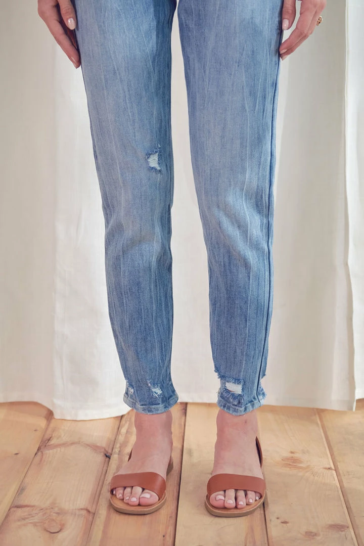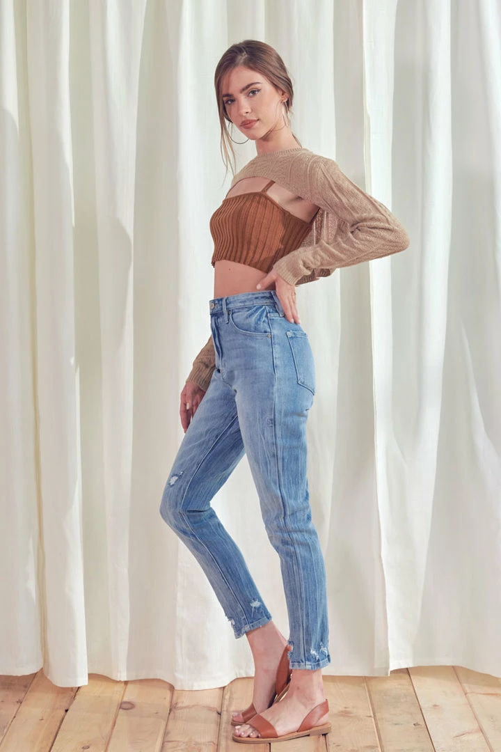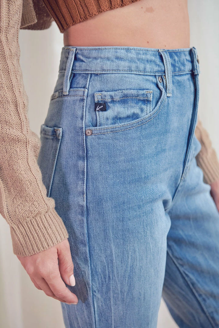 Our Terrance Ultra High Rise Mom Jeans come in a faded wash with moderate distress for a trendy, worn-in look. Sits high above the natural waistline as it relaxes down the leg creating a chic mom fit. Made with comfort-stretch denim that’s flexible yet durable enough to maintain its shape after wear. Features a classic five-pocket design, single-button front, and zip-fly closure.