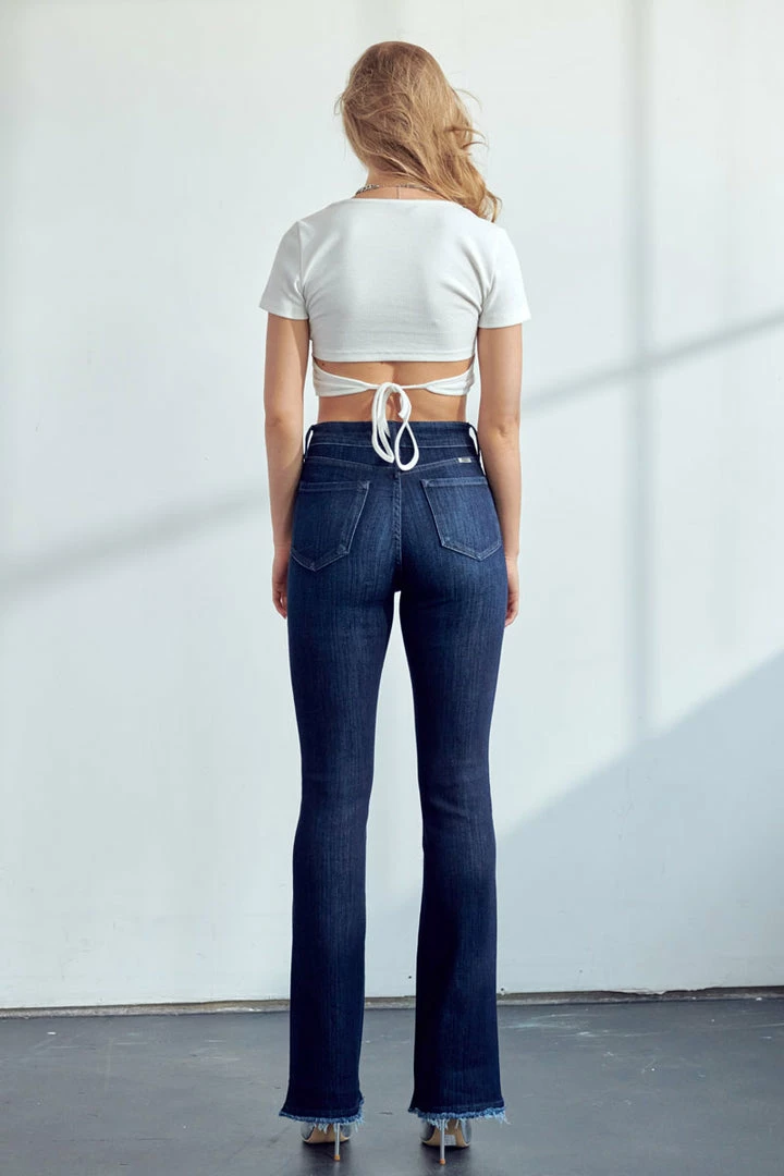 Our Tessa High Rise Jeans come in a flared, bootcut fit with subtle whiskering and a gently faded wash for a classicly chic look. Sits above the natural waistline as it tapers down the thigh and flares out at the calf. Made with stretch denim that moves with your body as it maintains its shape even after multiple wears. Features a classic five-pocket design, and a 5 piece button closure.