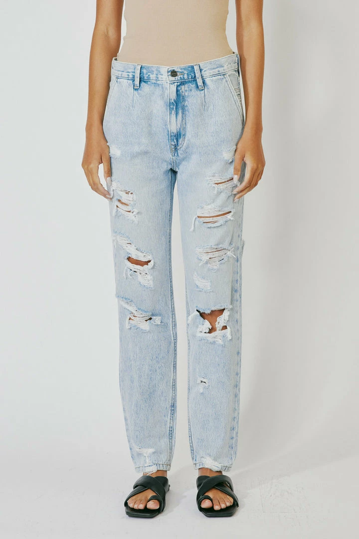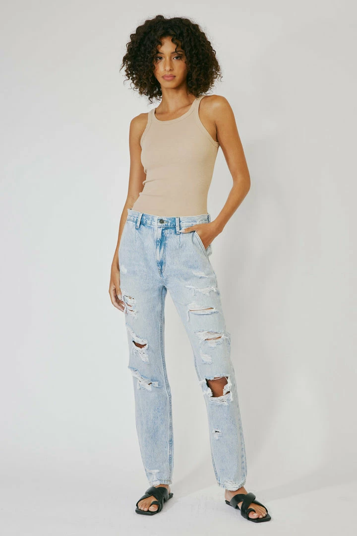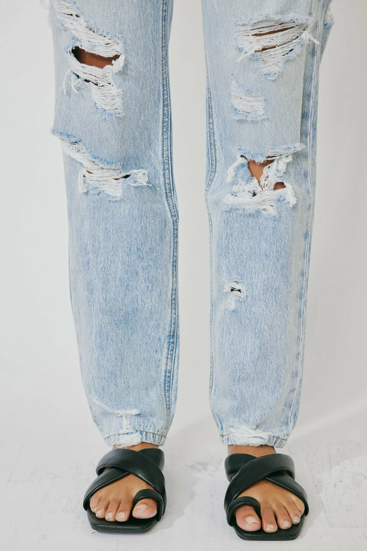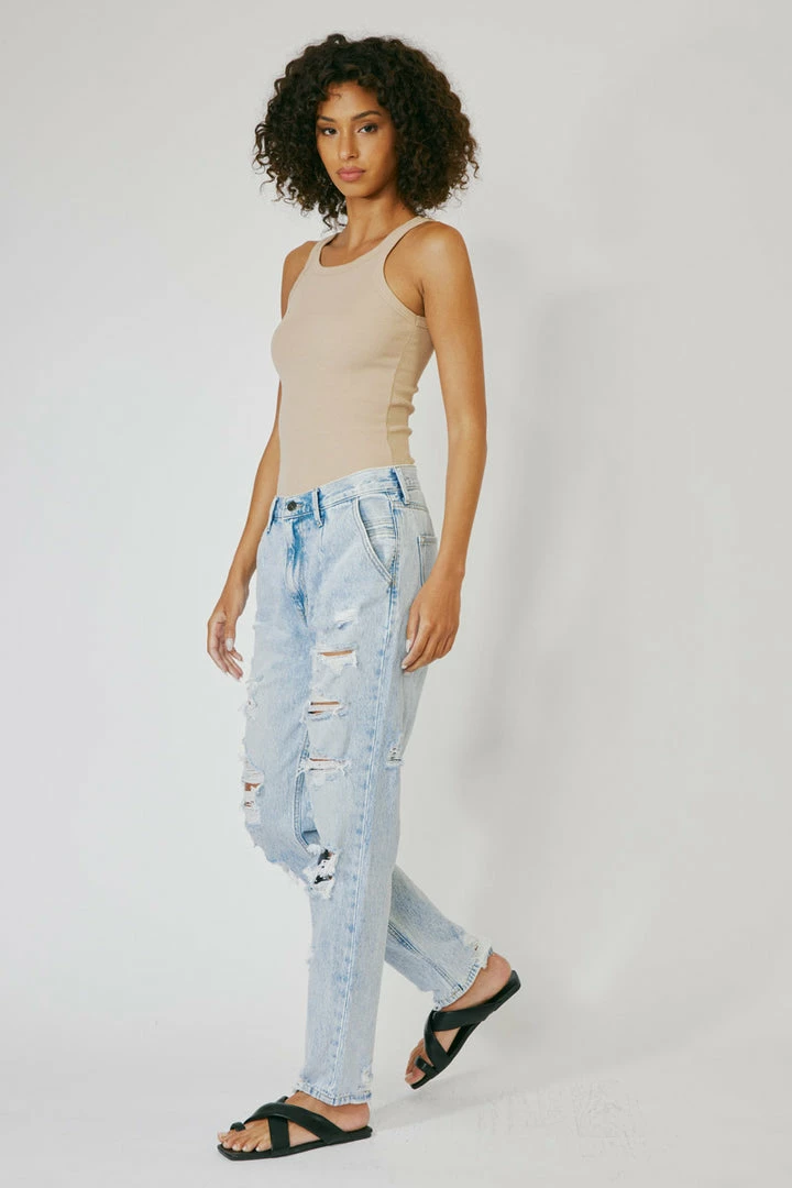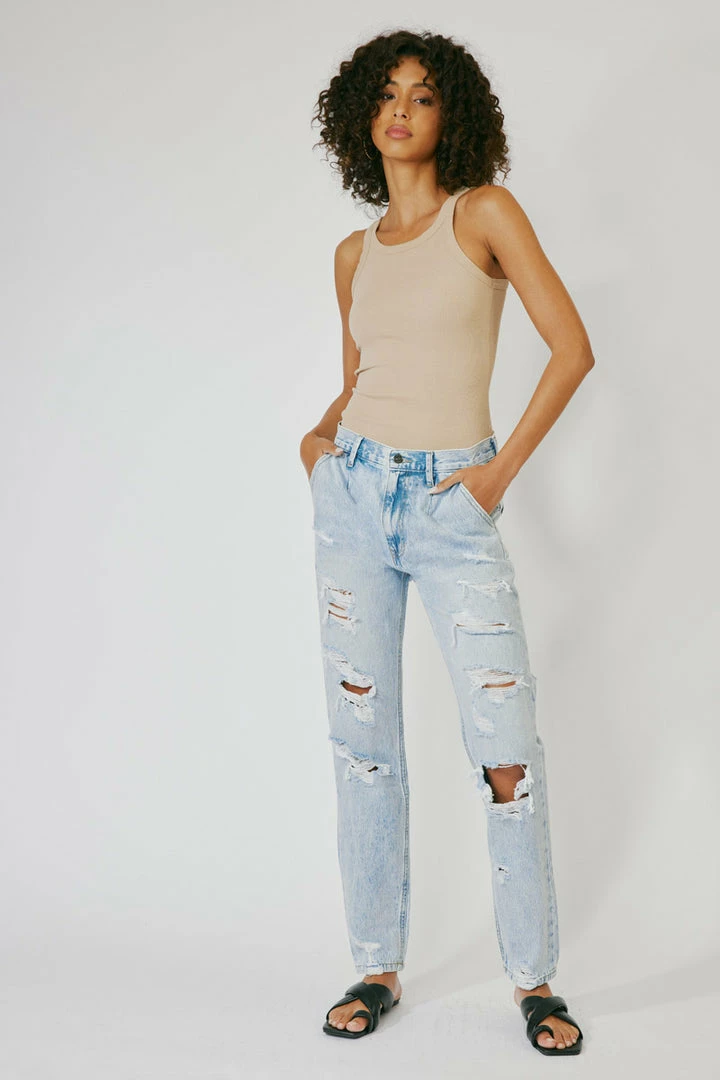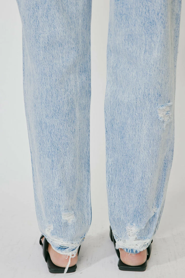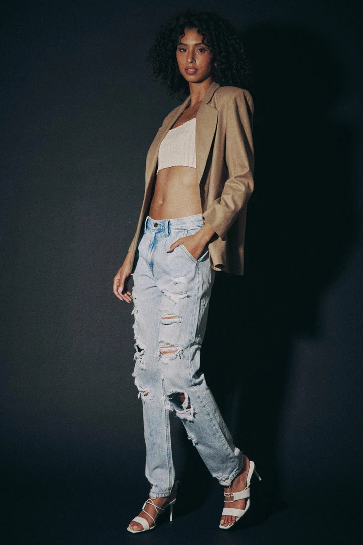 A 90’s slouch fit jean with optimal distress that creates a vintage look and feel. Our Zariyah Ultra High Rise Jeans give you a classic blue jean design that’s relaxed fit is comfortable and chic. Sits high above the natural waistline as it drapes over the legs creating a unique silhouette that goes well with any fit. Made with rigid denim fabric that holds its shape while allowing you to move with ease. Features a four-pocket design and hidden five-button front closure.